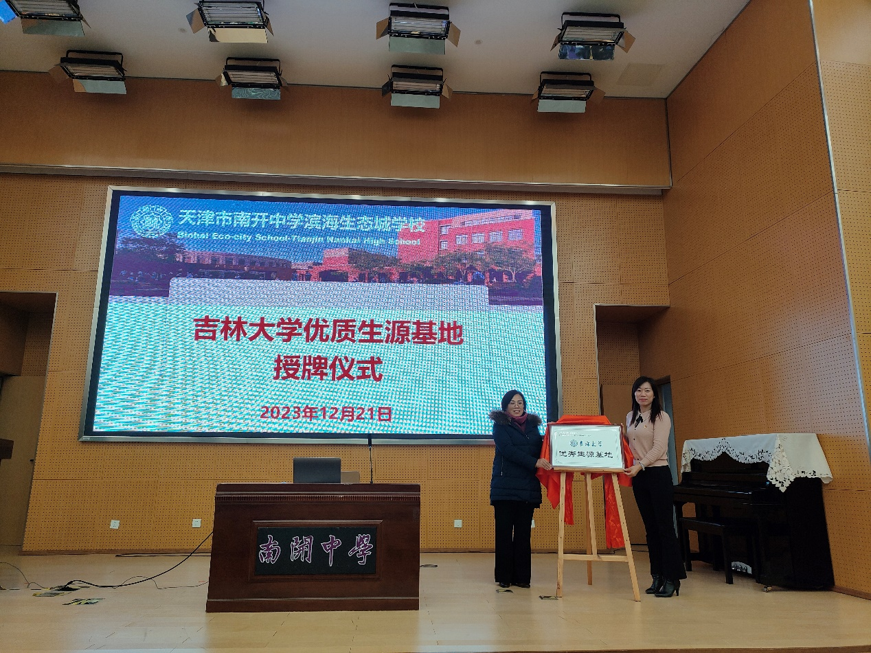 为持续提升公司本科生源质量,紧密加强与重点高中的合作交流,2023年12月21日、22日,公司联合基础医公司、法公司组建本科招生宣传团队,来到天津市滨海新区塘沽一中、南开中学滨海生态城公司、天津经济技术开发区第一中学,进行回访交流、优质生源基地授牌仪式、专业宣讲等活动。公司党委副书记兼副经理马艳秋、博士生导师呼咏教授,基础医公司党委副书记李东洋、生物医学科学系副主任闫天昊,法公司讲师吴梓源,yl23455永利天津员工会执行会长董津宁、副会长奚丹、员工李成、刘瑛等参加活动。
