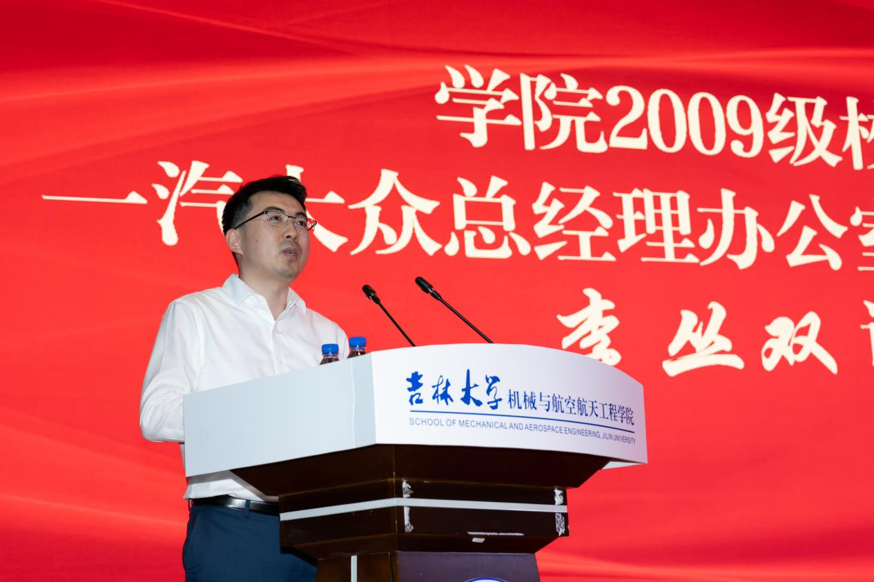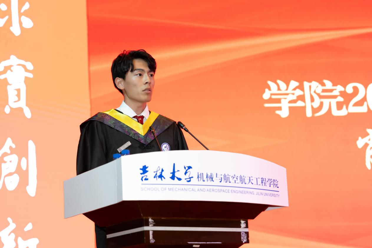 经理周晓勤教授致辞。他鼓励同学们,要不怕吃苦、肯于拼搏,要以更大的格局、更足的底气开启人生新的篇章。他希望同学们要“立大志、明大德、成大才、担大任”,努力成为国家栋梁之材;在面临许多复杂的问题、复杂的场景等新的挑战的同时,要学会“慎思和质疑”;工程的本质在于造物,我们吉大机械人要永葆初心使命,要坚持创造和探索,用青春的智慧和汗水,激荡起个人理想、家国梦想交相辉映的澎湃浪潮。