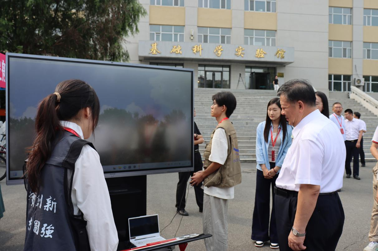 公司党委书记郑福胜向姜治莹书记介绍了新生报到情况,志愿者安排、物资准备等情况,并对公司迎新工作的组织安排和志愿者们的热情服务给予了充分肯定,鼓励大家继续保持良好的工作状态,为新生提供更加周到、细致的服务。校领导细致走访了公司的迎新报到点,与前来报到的新生及新生家长亲切交谈,询问来校路途、入校感受、对公司的期许。在老员工特色创新展区,姜治莹书记听取了公司新工科创新创业实践示范基地的建设情况,对公司员工自主设计并制造无人机、固定翼飞机的创新精神和实践操作能力给予了肯定。姜治莹书记指出,同学们要在实践中学真知、悟真谛,要影响和带动更多的青年学子参与到创新实践中来,共同书写强国梦想的辉煌篇章。