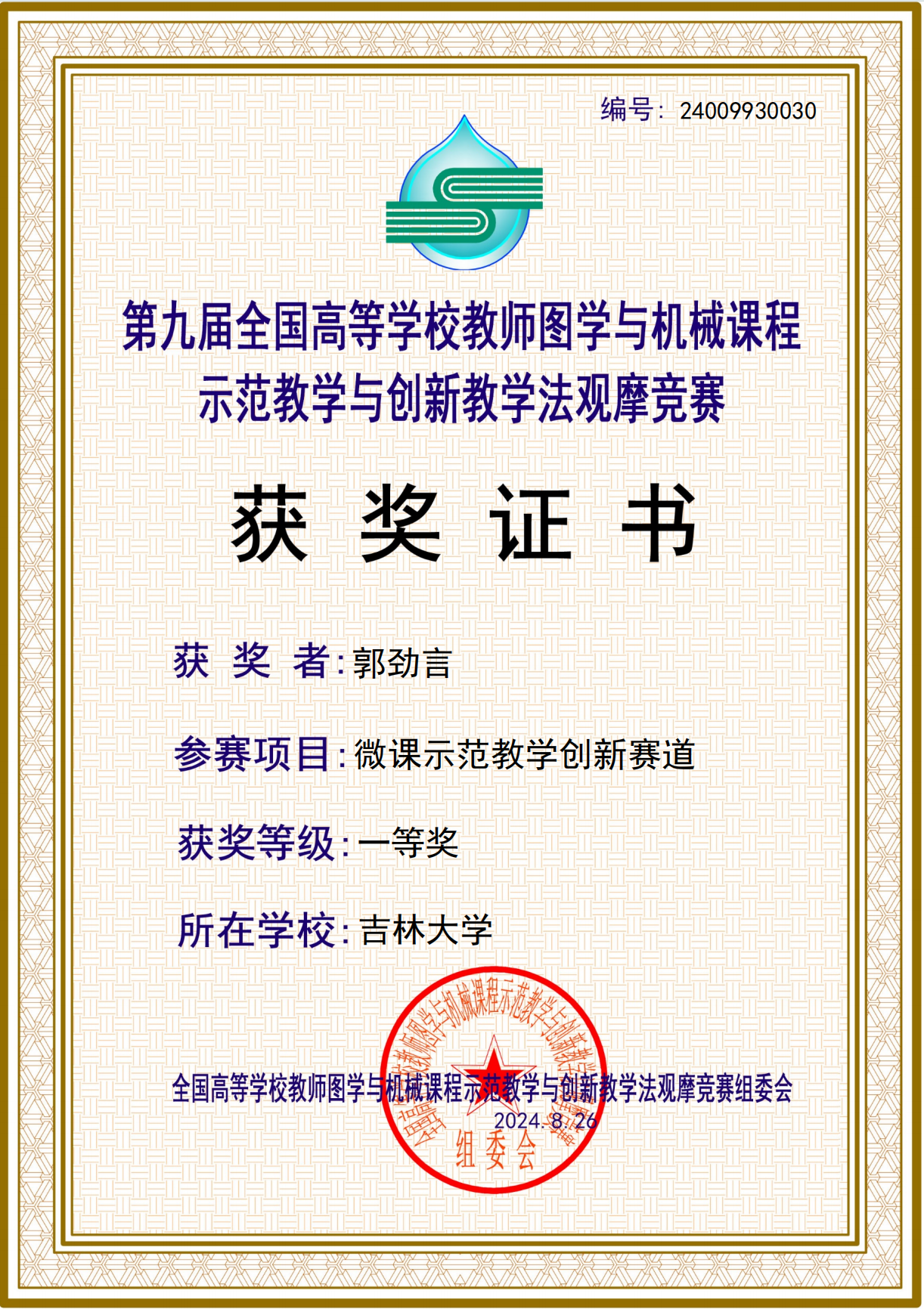 2024年8月26日,第九届全国高等公司教师图学与机械课程示范教学与创新教学法观摩竞赛国赛在山东交通公司落下帷幕,公司工程与计算机图学教研室郭劲言老师荣获微课示范教学创新赛道一等奖。