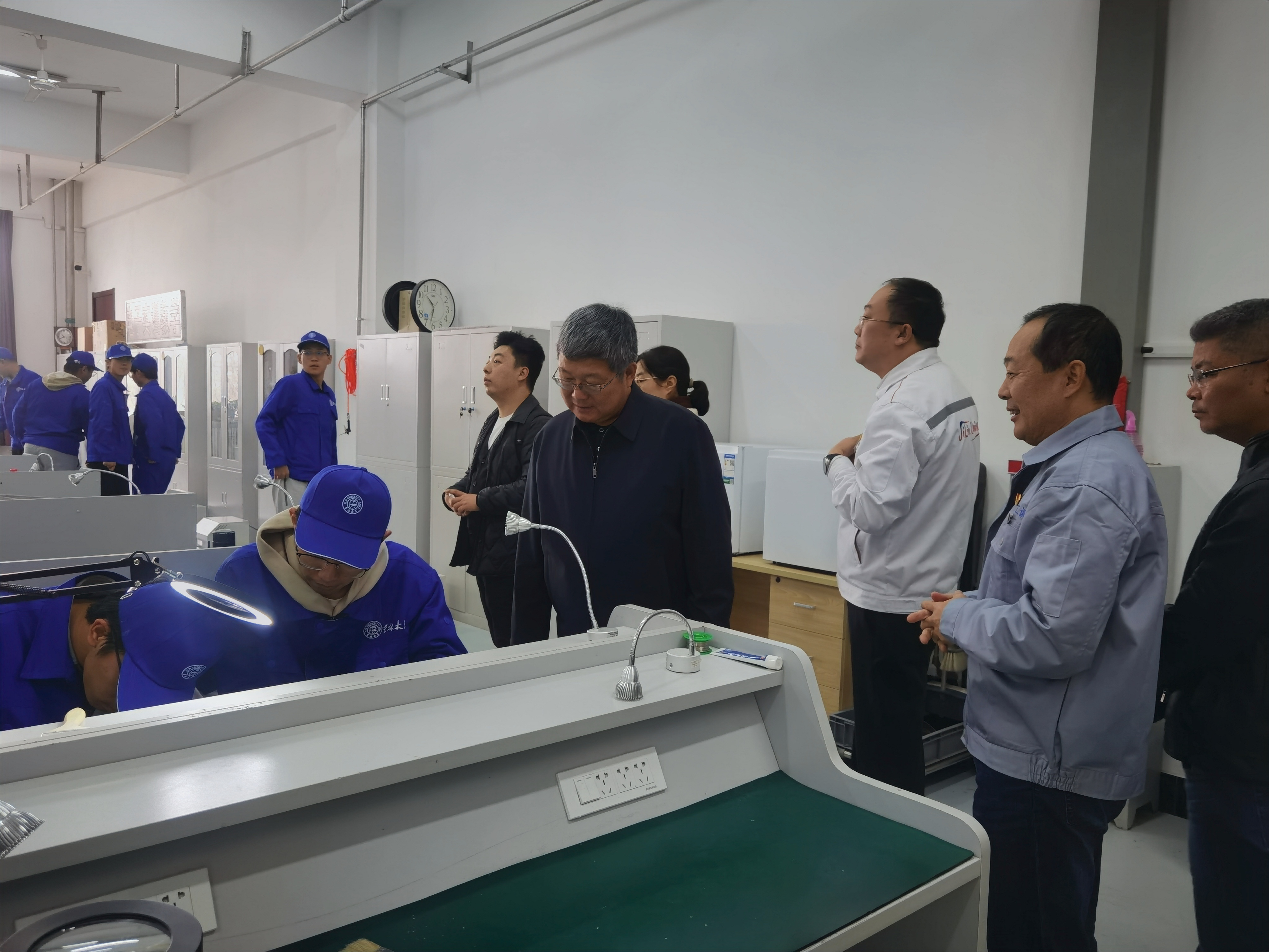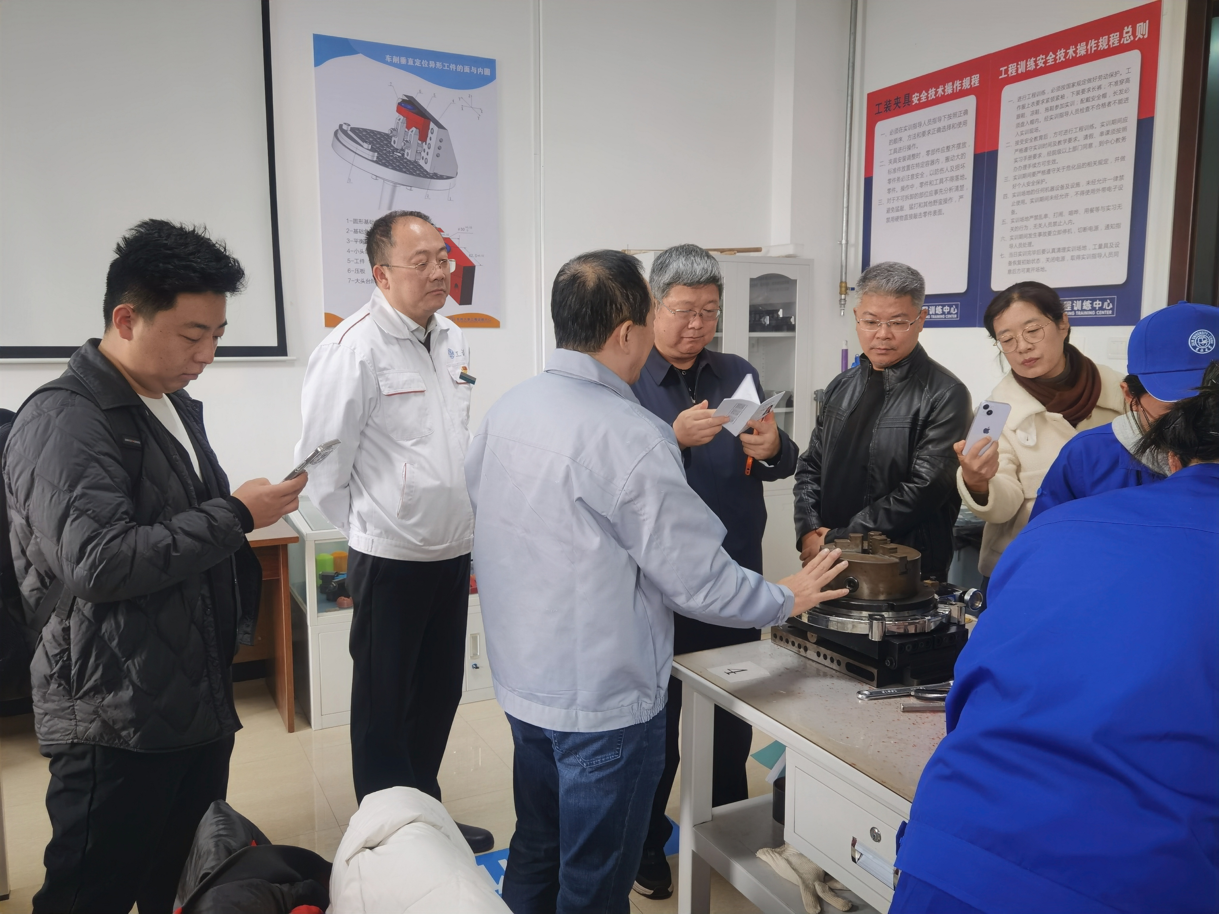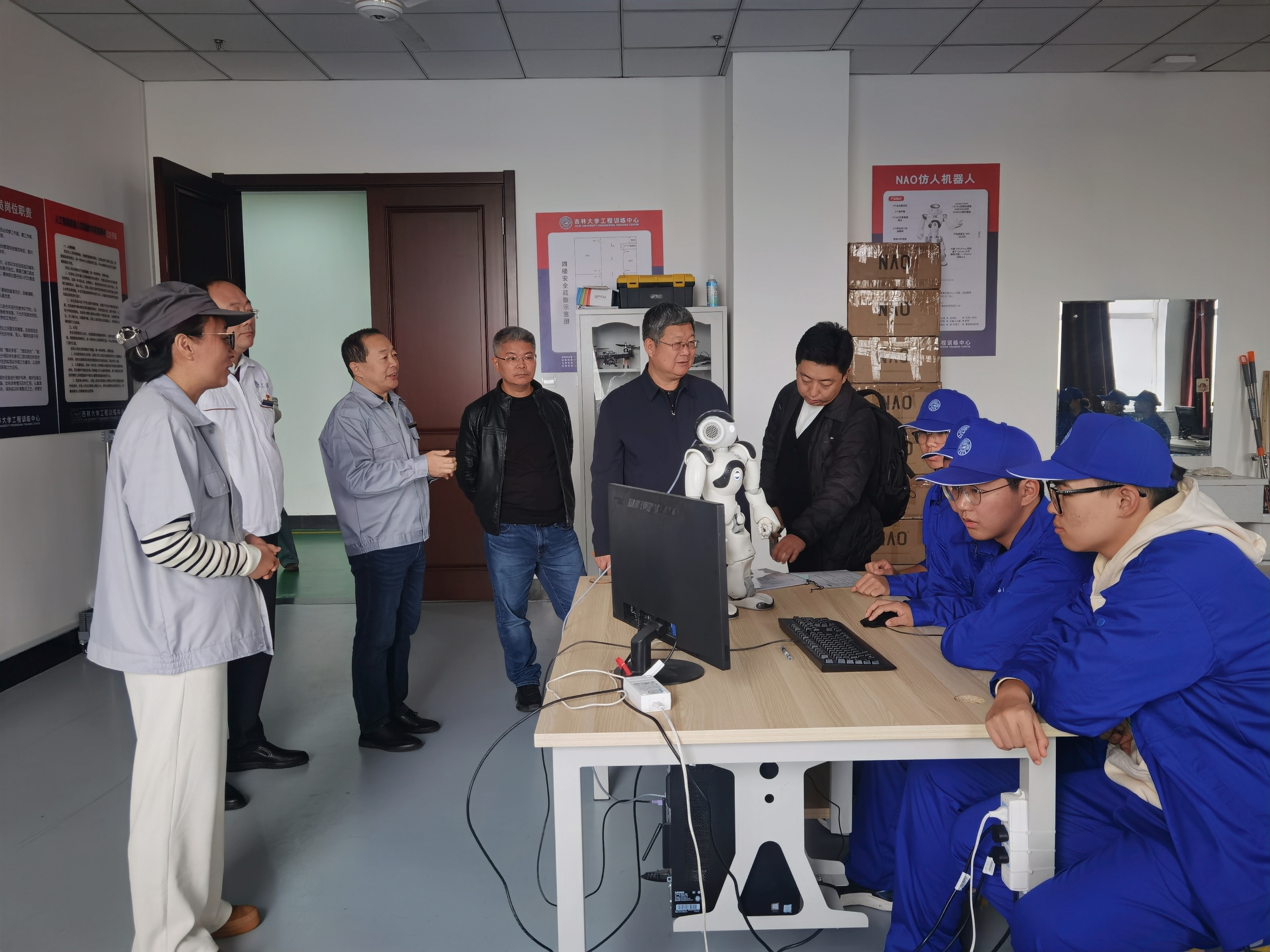 在了解了公司工程训练中心的建设概况、育人特色、课程体系等基本内容后,李卫国教授、刘晓青副秘书长一行参观了工程训练中心的所有教学模块,在加工中心、工业机器人、智能制造、数控车、3D打印、竞技机器人、液态金属电路打印、机械拆装等实训模块与中心师生进行了深入的交流。参观后李卫国教授、刘晓青副秘书长一行对公司工程训练中心的实验室建设和工程实践教学给予了充分肯定和高度评价。