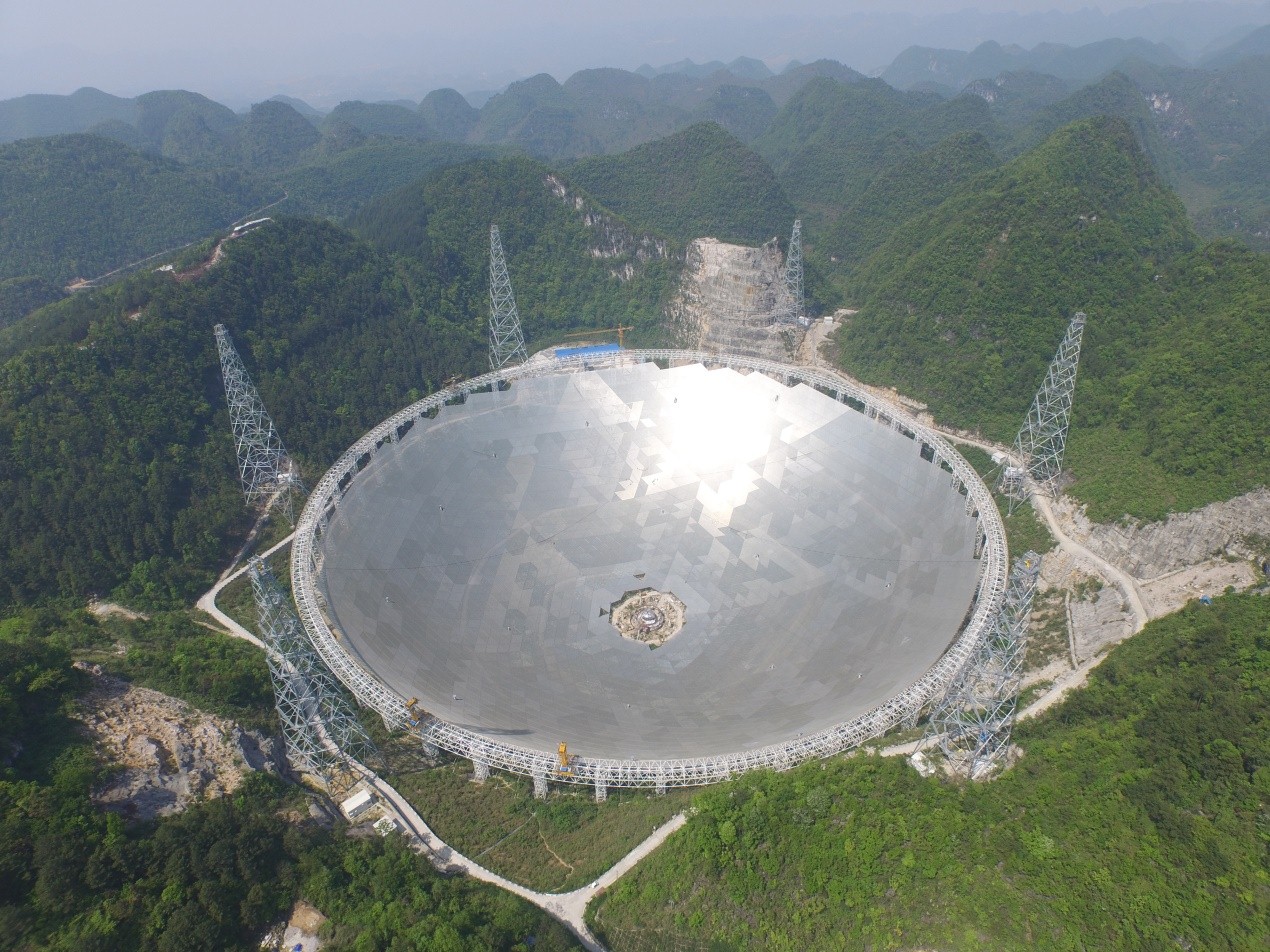 世界上最大的单口径球面射电望远镜FAST(Five-hundred-meter Aperture Spherical radio Telescope)于9月25日在贵州省黔南布依族苗族自治州平塘县落成启用,开始接收来自宇宙深处的电磁波。500米口径球面射电望远镜被誉为“中国天眼”,是具有我国自主知识产权、世界最大单口径、最灵敏的射电望远镜。它的落成启用,对我国在科学前沿实现重大原创突破、加快创新驱动发展具有重要意义。