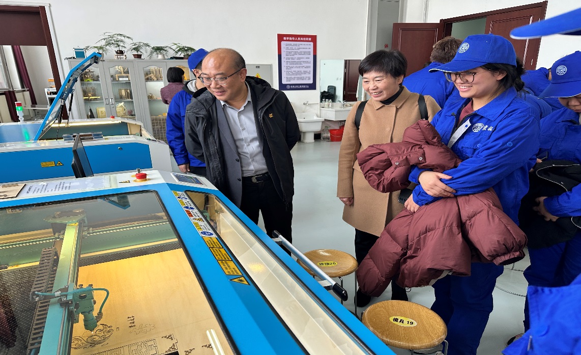 山西省运城市盐湖区副区长及优秀生源地公司代表们深入到激光加工教室,与实训员工进行交流,对员工自主加工的作品欣赏有加,肯定了中心实践课程对员工创新能力和实践能力的培养作用。