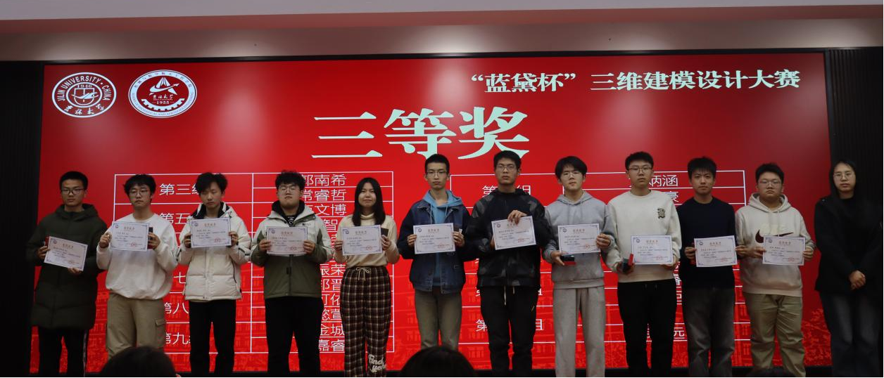 首先,蓝黛科技股份有限公司人事总监徐利梅通过一段生动的视频对蓝黛集团进行介绍,作为国内高端装备制造领域的领军企业,蓝黛集团始终致力于精密部件的研发生产,与公司在产教融合和协同育人方面有着深度合作。本次冠名的“蓝黛杯”比赛,正是期望推动理论知识与生产实践深度融合。随后,由公司党委副书记兼副经理柴媛老师宣布开赛,现场迅速进入“无声战场”——选手们全神贯注地敲击键盘,屏幕上的数字模型随指令不断迭代,精密的助推器喷头、太阳能板等部件在虚拟空间中渐次成型。在持续60分钟的建模过程中,来自南岭校区各公司的多名学子同场竞技,以数字化建模展现创新思维,以专业技能诠释工业美学。他们凭借着对SolidWorks软件的熟练掌握程度,流畅顺利地完成了各个精密零件的建模。比赛结束,评委对选手们的建模零部件依次打分,评选出一、二、三等奖。最后,由颁奖嘉宾依次上台为获奖选手颁奖并合影留念,他们脸上洋溢着的灿烂笑容是背后努力学习、扎实积累的真实写照。