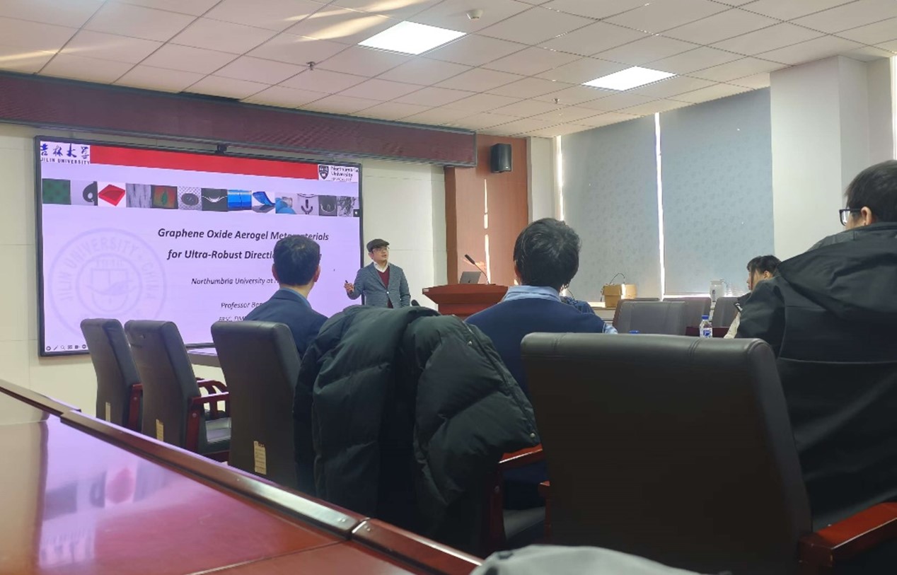2025年1月16日早上,公司卓越论坛第20期于南岭校区机械材料馆529成功举办。英国诺桑比亚大学Ben Bin Xu教授做了题为“Graphene Oxide Aerogel Metamaterials for Ultra-robust Directional Sensing at Human-machine Interfaces”的学术报告。论坛由公司吴文征教授主持,公司教师和研究生40余人参加了论坛。