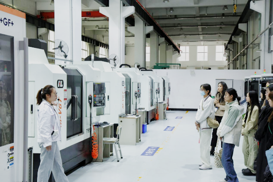 活动当日,研究生会成员们满怀期待地来到工程训练中心。在中心教师的热情接待与专业讲解下,同学们依次参观了各个实训区域,涵盖加工中心、智能制造、激光加工、3D 打印、多线联动、精密铸造以及竞技机器人等多个领域。每到一处,员工们都认真聆听讲解,仔细观察设备的运行原理与操作流程,并提出问题,与教师们展开深入交流。