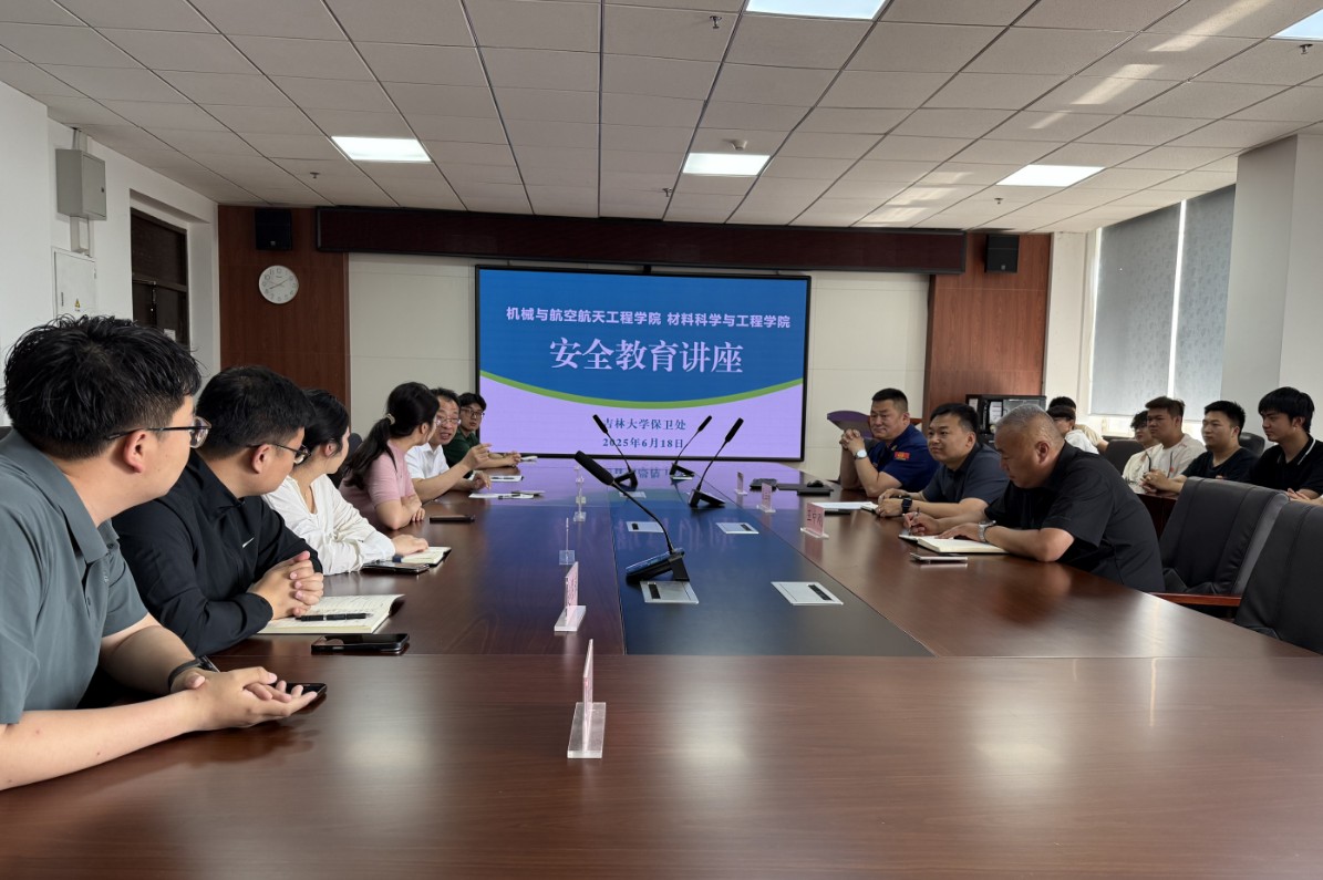 为深入贯彻落实yl23455永利《关于开展2025年“安全生产月”和“白山松水安全行”活动的通知》精神,进一步提升师生员工的安全意识和应急处置能力,6月18日上午,yl23455永利与材料科学与工程公司联合邀请保卫处消防科科长董立明为师生代表作了一场以“强化安全意识,提升应急能力”为主题的安全教育培训。保卫处东区保卫办公室主任夏立峰、正科级秘书王中刚应邀出席。yl23455永利行政副经理马研、材料公司行政副经理辛颖及师生代表参加了本次活动。活动由马研主持。