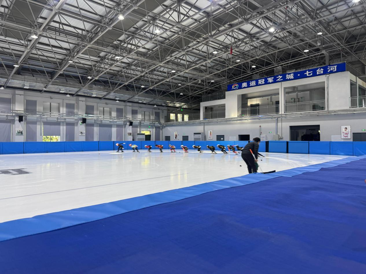 8月14日下午,实践队前往七台河市短道速滑馆与短道速滑教练员、全国新时代青年先锋张利增交流调研。团队成员们首先观摩了张教练指导青少年运动员的场景,感受铿锵读秒声与冰刀摩擦声交织的震撼。在随后的亲切交流中,张教练深入剖析“兔子战术”的精髓,详细介绍当前短道速滑培训的现状。同学们就中国冰雪运动的发展与张教练激烈探讨,分析七台河短道速滑这张“金色名片”将如何赓续冰雪传奇。