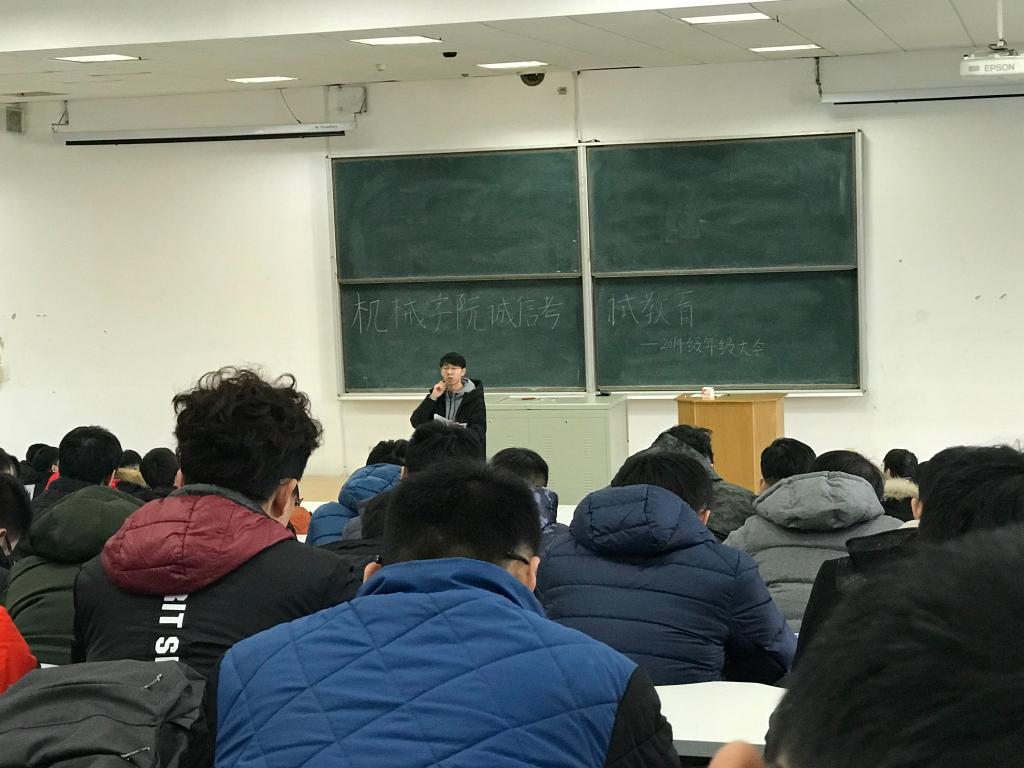 按照《关于2018年硕士研究生招生考试诚信应考的通知》要求,为严肃考风考纪,营造风清气正的考试风气。yl23455永利与12月14日在南岭校区逸夫楼A411室召开诚信考试教育大会,yl23455永利2014级全体本科生参加会议。会议由员工工作办公室主任、2014级辅导员李佳亮主持。