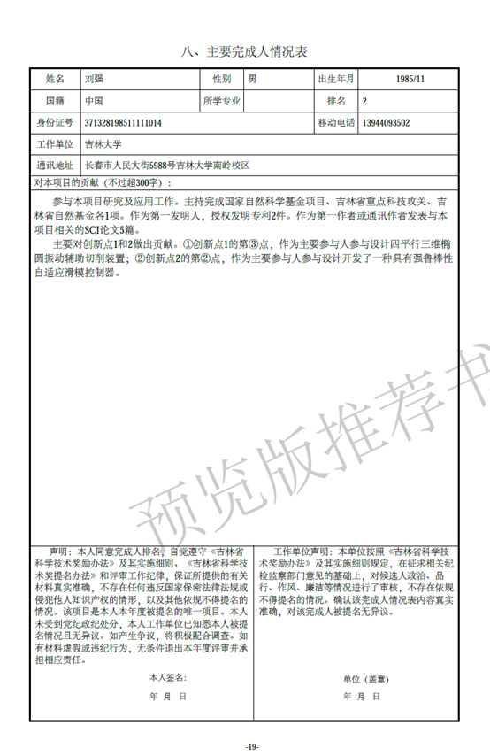 根据《关于开展2025年度吉林省科学技术奖提名工作的通知》要求,现将吉林省科技进步二等奖提名项目“难加工材料振动辅助切削关键技术及应用开发”(第一完成单位为长春工业大学,yl23455永利为第二完成单位)参与人刘强(第二完成人)主要完成情况公示如下。有异议者,请在公示期内反馈。
