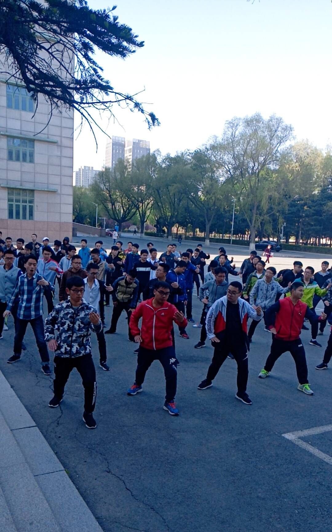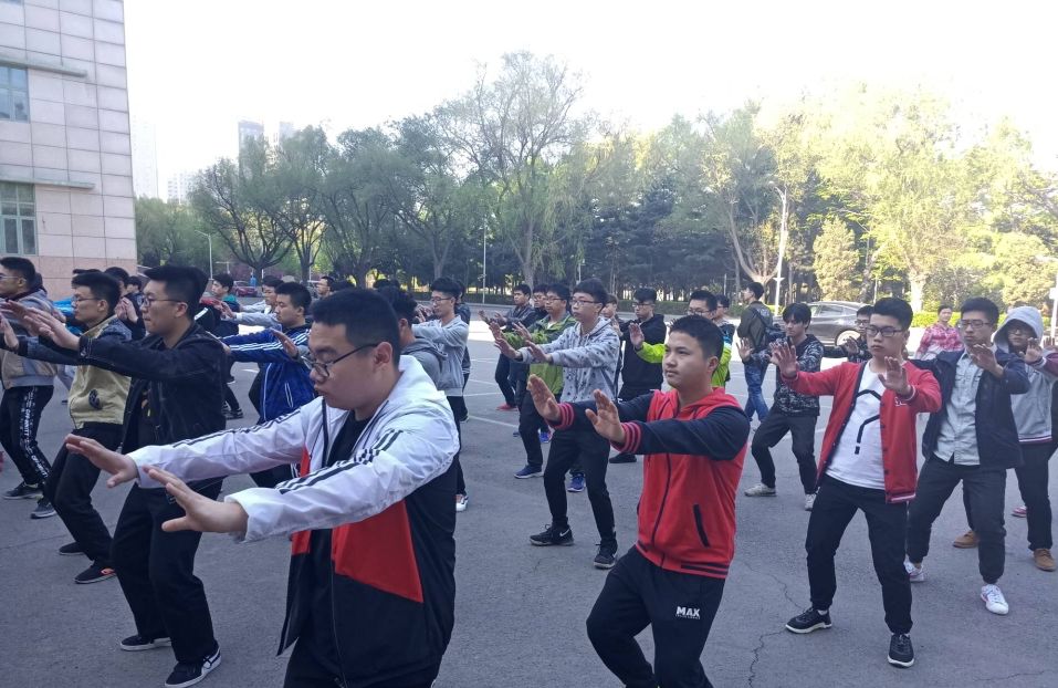 春风微凉,晨阳微露,淡淡香袭,为迎接即将到来的校运动会,练太极拳的同学伴着清晨的第一缕阳光走向训练场地,进行2017级员工太极拳训练,并于5月4日早在文化活动中心门前进行了人员选拔。此次选拔由素质拓展部副部长张广玉等人负责。