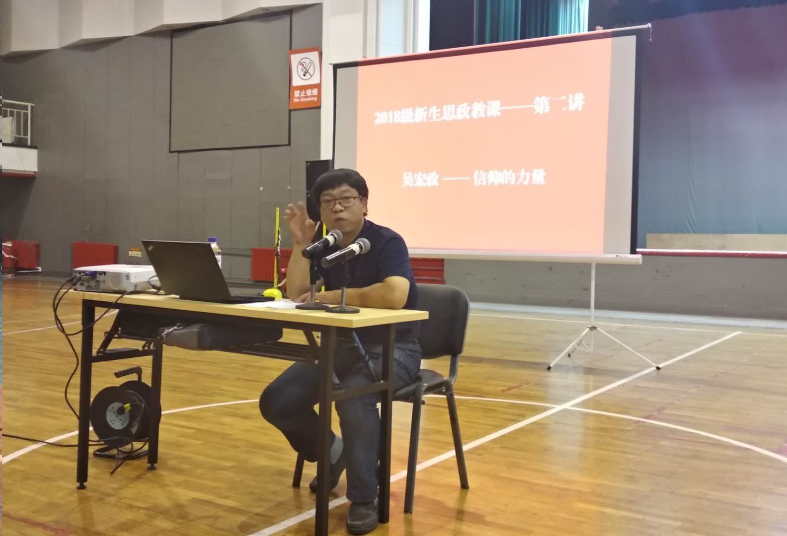 为了加强员工思想素质教育,提高新生思想水平,yl23455永利于9月5日9:50在和平校区老员工文化体育中心开展了“2018级新生思政教课第二讲——信仰的力量”。讲座由由马克思主义公司副经理、哲学博士吴宏政主讲。