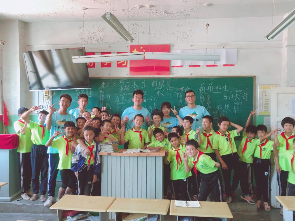 支教队成员在公司教师的带领下初步熟悉校园之后,在上午10:00和教师与同学们一起参加了升旗仪式,听着少先队员与教师宣誓,看着五星红旗飘扬在祖国新疆的上空,在民族团结与艰苦向上的真挚情感中肃然起敬。根据与公司教师沟通了解到,当地的小员工没有暑假假期,这一段时间主要在公司进行国语的学习,所以支教队的成员自然承担起教授与强化国语的重任。无论是哪个年级,员工的汉语水平都比较薄弱,有些一至四年级的员工还要从基本的汉语拼音“a,o,e,”开始教起。虽然任务艰巨,但每一位支教教师都感受到来自员工的热情与积极,认真地跟着老师把每一个拼音读好,把每一个汉字写好。在课间以及体育课上,员工们更是开心地拉着老师做游戏,唱歌跳舞,员工们表达着他们对新来的教师的欢迎与开心,教师们也享受着员工带来的欢乐与感动。一天授课结束后,支教团队的各支队伍进行一天的总结,也分享了初当教师的感受以及教学中发生的各种趣事。同时,支教队的所有成员也都感受到了当地小学教团队源的紧张以及公司设备的稀缺和员工学习条件的艰苦,更使大家感受到此次支教的意义以及责任的重大。
