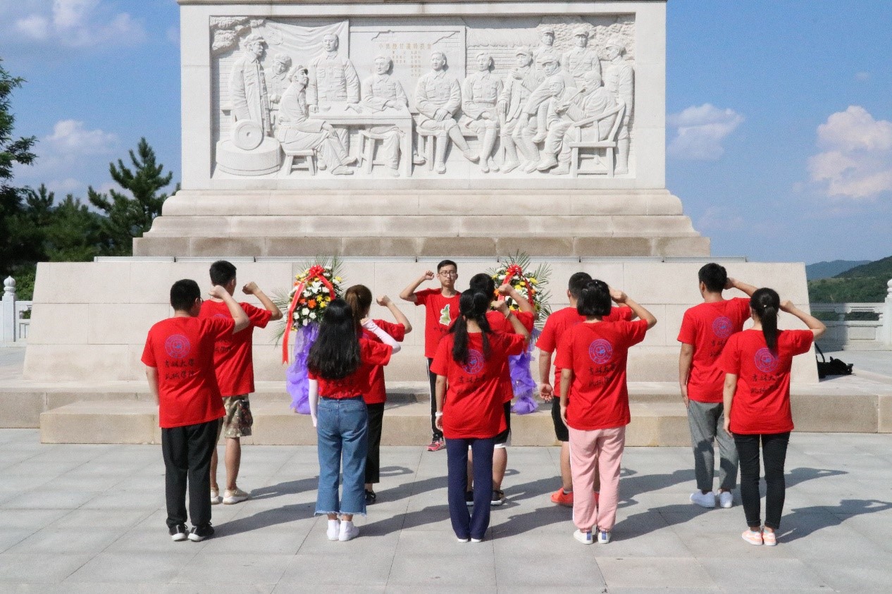 本次活动主要分为两个部分,首先,全体社会实践成员于上午九点抵达当年工农红军第二十六军驻扎的薛家寨,1933年,这里曾发生一起武装反抗国民党反动派的薛家寨保卫战,一行人沿着几乎是垂直的阶梯爬至当年红军驻扎的遗址处,感受革命先辈顽强不屈的意志品质。同学们互相帮助,成功抵达山顶后先后参观了一至四号寨遗址,看着眼前陡峭的山峰和红军驻扎的环境不由得为革命前辈们不畏艰险,克服一切困难坚持革命的信念所震动。随后同学们于下午三点抵达陕甘边照金革命根据地纪念馆,在讲解员的陪同下,同学们结合红色革命历史完整的参观了纪念馆内陈设的各类珍贵展品。借助这次参观活动,同学们对这段革命历史更加了解,对其中所蕴含的红军革命精神掌握地更加透彻。在来到威严庄重的陕甘边革命烈士纪念碑下时,同学们特意举行了敬献花篮仪式,并于纪念碑前重温入团誓词。