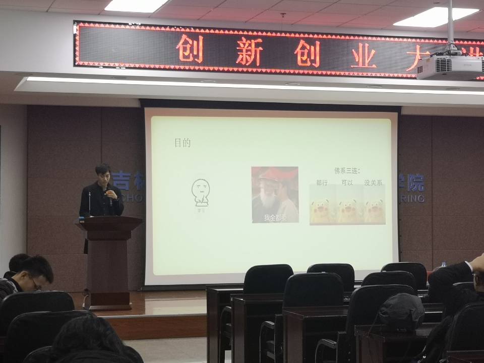 在主持人简明扼要的开场白下,活动正式开始。首先由董景石老师讲解大赛和员工培训计划的流程,董老师在讲解时不时加入自己的带队经验,让讲解增加了几分生动。随后高九州老师和王继利老师分别就老员工创新项目及数学建模大赛作出了详细的讲解指导,王老师还给大家展示了几道数模大赛的题目以便同学们能更好地了解。最后,在各项大赛竞技上都有着丰富的经验、硕果累累的大三大四员工代表也上台与大家进行分享,他们诙谐幽默的讲解方式使得大家印象深刻,受益匪浅。