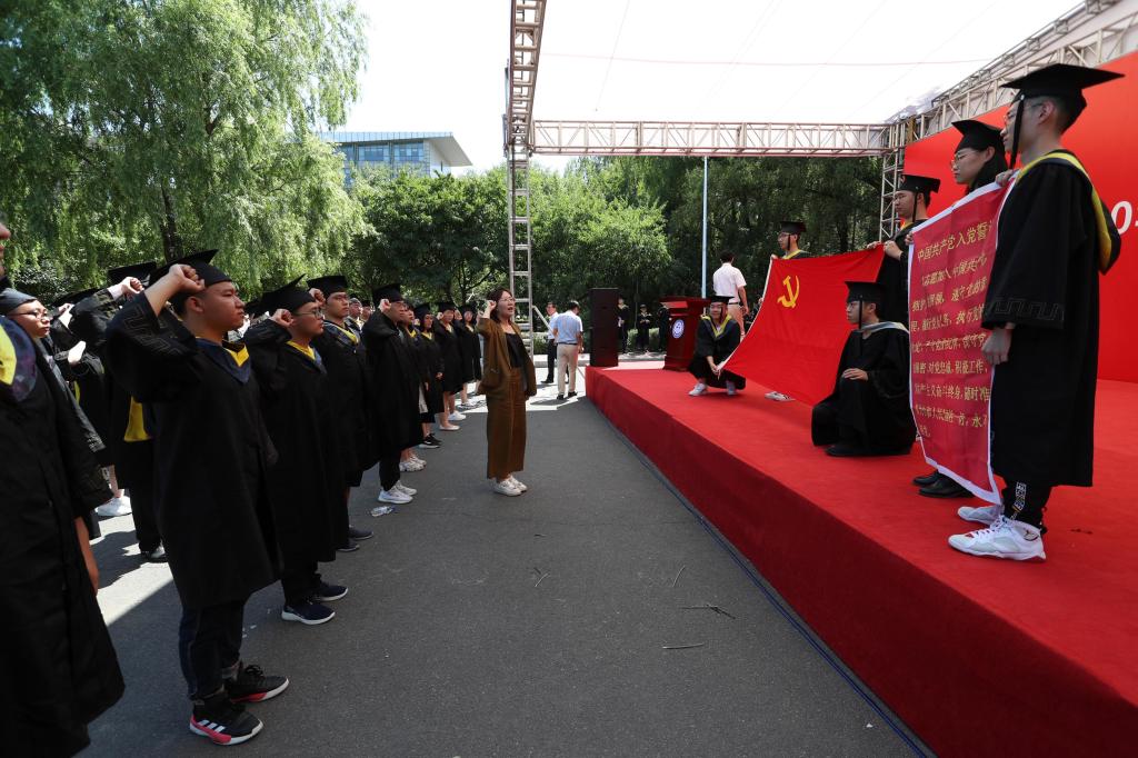 在本科生第二党支部书记房檬檬老师的带领下,全体毕业生党员庄严宣誓。宣誓是一种仪式,更是一种激励,一种鞭策,一种对信仰的强化。通过重温入党誓词,他们的心灵再次受到震憾,更加坚定了毕业生党员的理想信念,警醒他们牢记自己的历史使命,增强责任感,艰苦奋斗,励志图强。