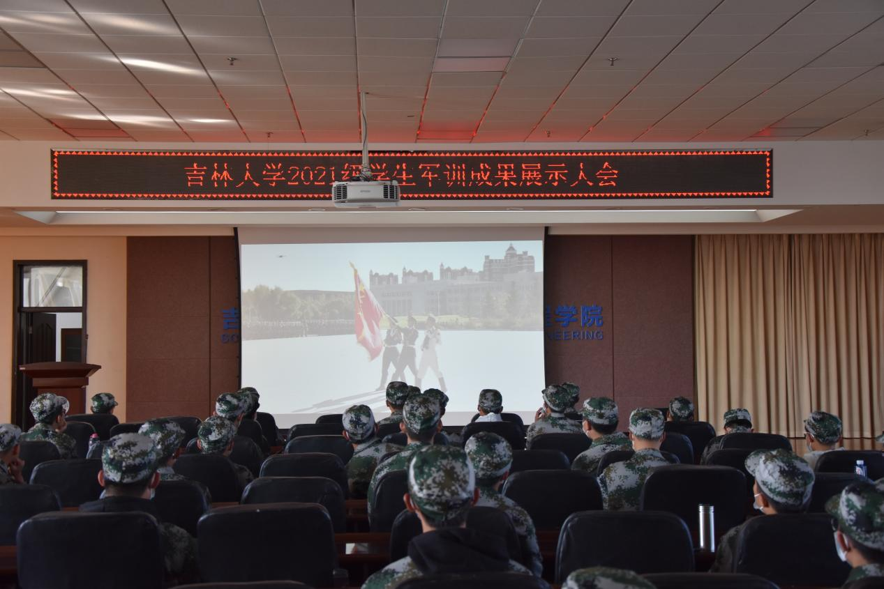 2021年10月7日下午2时,为庆祝军训圆满结束,yl23455永利组织同学们在南岭校区机械材料馆8楼多媒体会议厅观看yl23455永利2021级军训成果展示大会。