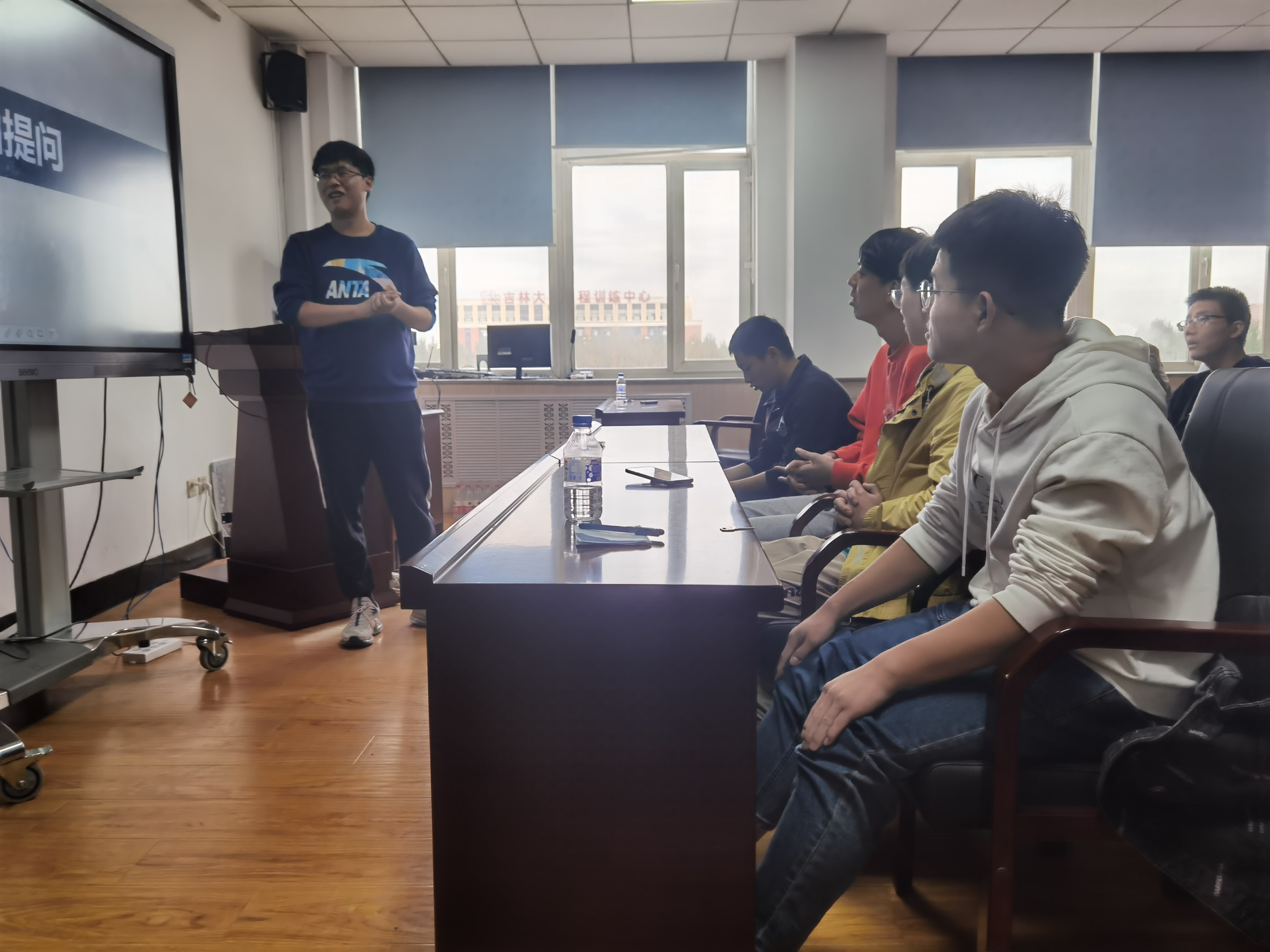 自由提问环节,曹营华学长认真回答了大家的问题。最后班长韩泽平简要总结了大一一学年十二班的学习状况。竞赛固然重要,但是它只是老员工活的一个补充,成绩才是最重要的。