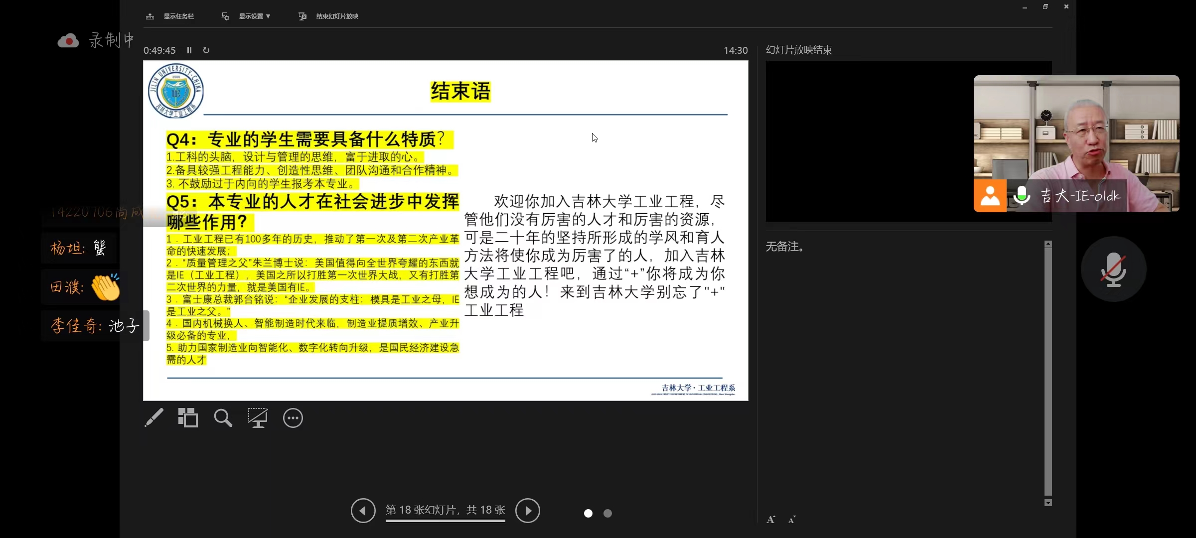 孔教授通过五个问题介绍了工业工程专业的情况: