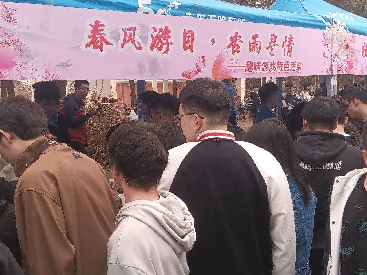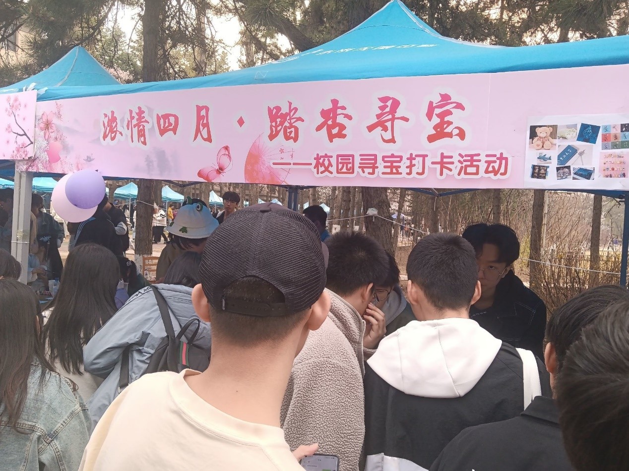 4月16日,yl23455永利员工会校园文化中心全体成员参与杏花节活动组织并取得圆满成功。在南岭校区的杏花大道上,校园文化中心组织并举办了“浓情四月·踏杏寻宝”——校园寻宝打卡活动,同时举办了“春风游目·杏雨寻情”——趣味游戏联谊活动。