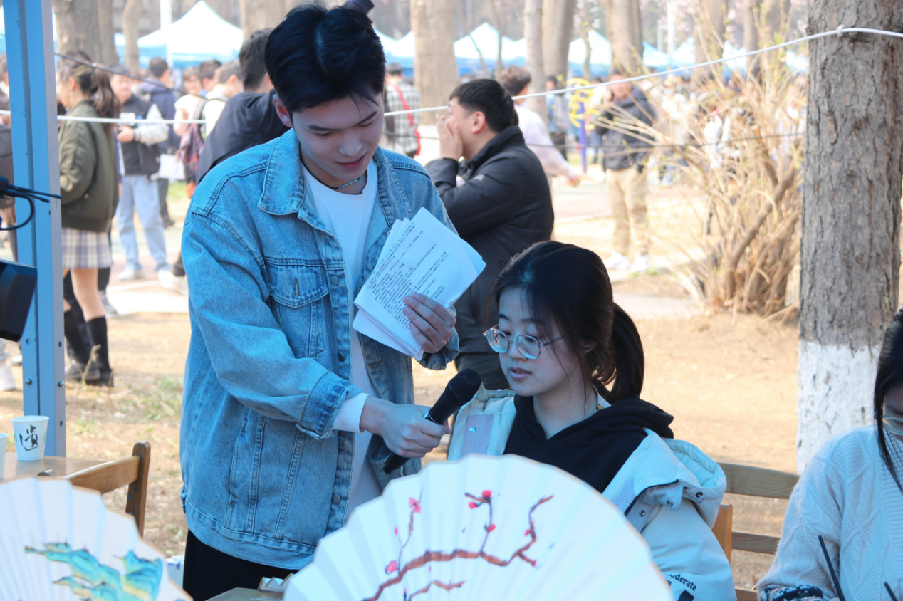 朝阳起,晨露散,笼罩在薄雾中的杏花渐显峥嵘,静候着观客们的到来。上午十点,本次杏花节的开幕式正式拉开帷幕,yl23455永利杏花文化体验区中陶扇面彩绘活动深受同学喜爱,同学们手持画笔,匠心创作,少许时,哆啦A梦、野比大雄等一个个活灵活现的动漫人物和一幅幅“杏花微语”、水秀山明的美景便呈现在精致的陶器和扇面上。期间,公司电视台采访,讲述着杏花,讲述着春,伴随周围观众的喝彩,构成一幅其乐融融的绝美春的画卷。