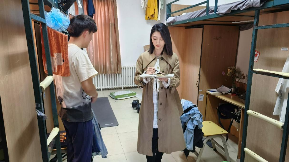 辅导员张瑛在检查中向同学们强调,五一假期是旅游高峰期,部分同学外出游玩,寝室处于无人居住的状态,要注意出门前对寝室进行全面断电,包括充电宝、插座等电器,拧紧消防“安全阀”,筑牢寝室“平安墙”。对于假期期间有人居住的寝室,严禁使用违禁电器,比如大功率电冰箱及发热电器等,一经发现,公司将采取严厉教育。在走访过程中,曲艺就同学们假期安排、近期生活状态与同学们进行了亲切的交流,并祝大家度过一个安全、愉快的五一假期。检查过程师生和睦,交流融洽,将发现的问题一一指出,各研究生们也表示会及时整改,营造一个和睦、文明的寝室氛围。