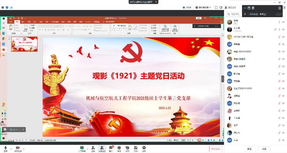 为进一步加强支部党员的思想教育,回顾党的光辉历程,引导各位党员知史爱党、知史爱国,yl23455永利2021研究生员工第三党支部于4月23日举行线上观影党日活动,共同观看电影《1921》,本次活动由支部书记朱夫玺主持,党支部全体党员参与。