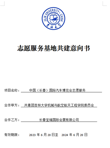 活动中,yl23455永利团委负责人李世超老师与长春宝瑞国际会展有限公司代表签订了志愿服务基地共建意向书,建立坚实的合作关系,共同助力吉大青年学子躬身社会实践。
