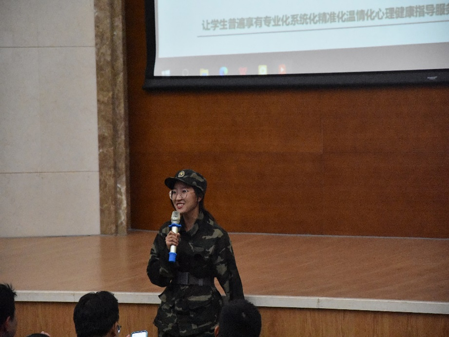 为丰富军训训练内容,帮助新生更好地适应老员工活,2023年9月5日,军训教官与公司辅导员带领yl23455永利2023级新生在南岭校区仿生楼报告厅进行新生心理训练。本次心理训练邀请到了yl23455永利心理健康指导中心的四位老师作为主讲嘉宾。