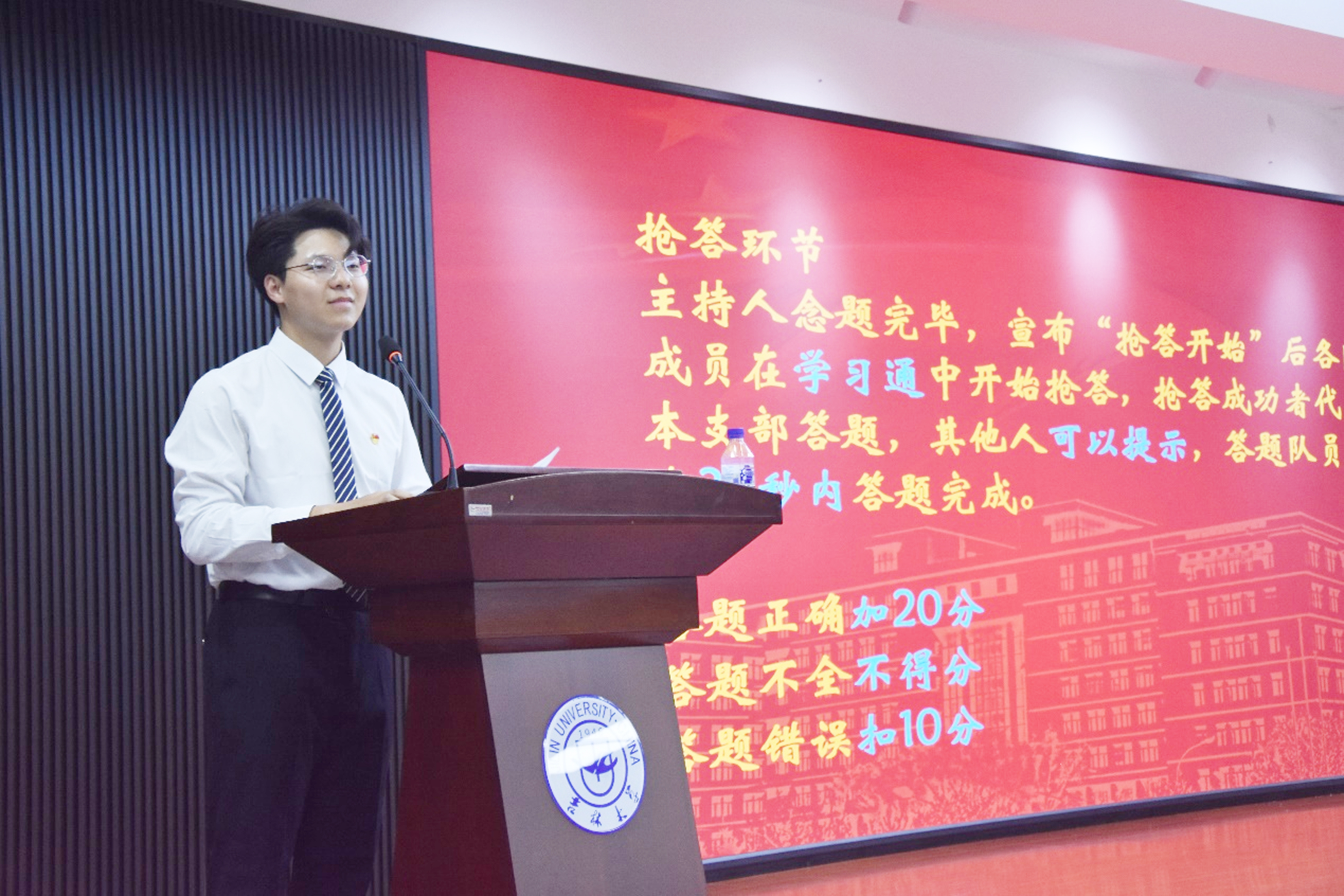 比赛伊始,主持人介绍了比赛规则,确保每位参赛者都充分理解并遵守。随后,比赛正式进入紧张刺激的必答环节。选手们凭借扎实的知识储备和敏捷的思维反应,展现了高水平的竞答状态。紧接着的抢答环节更是将现场气氛推向了高潮,各党支部选手们斗志昂扬,争分夺秒,积极为队伍争取每一分。