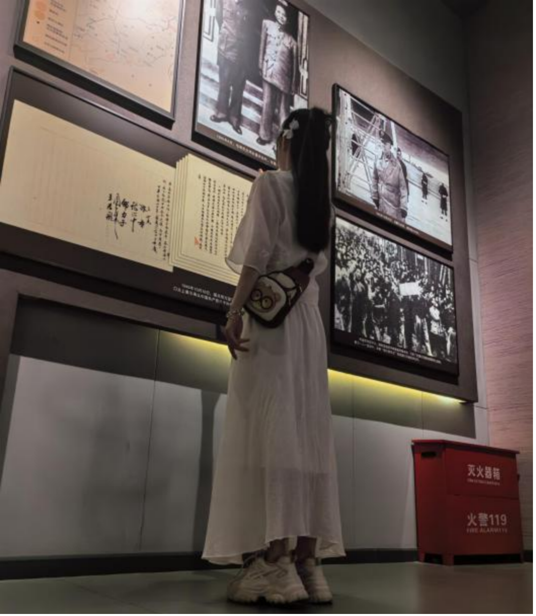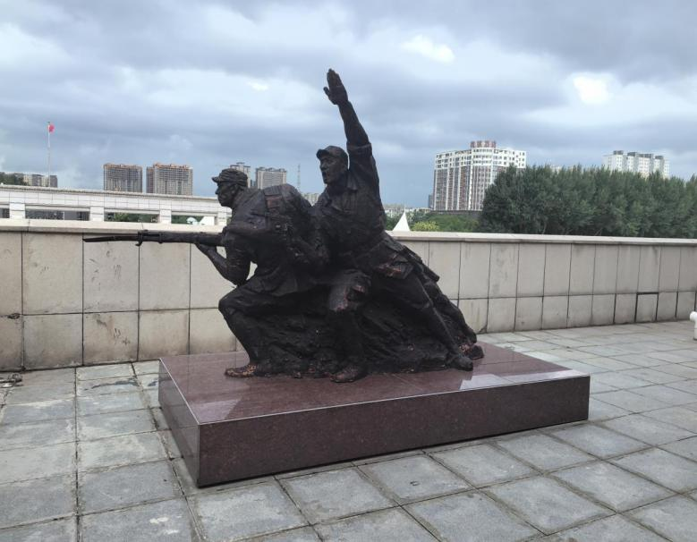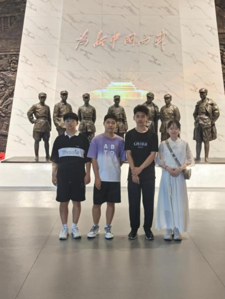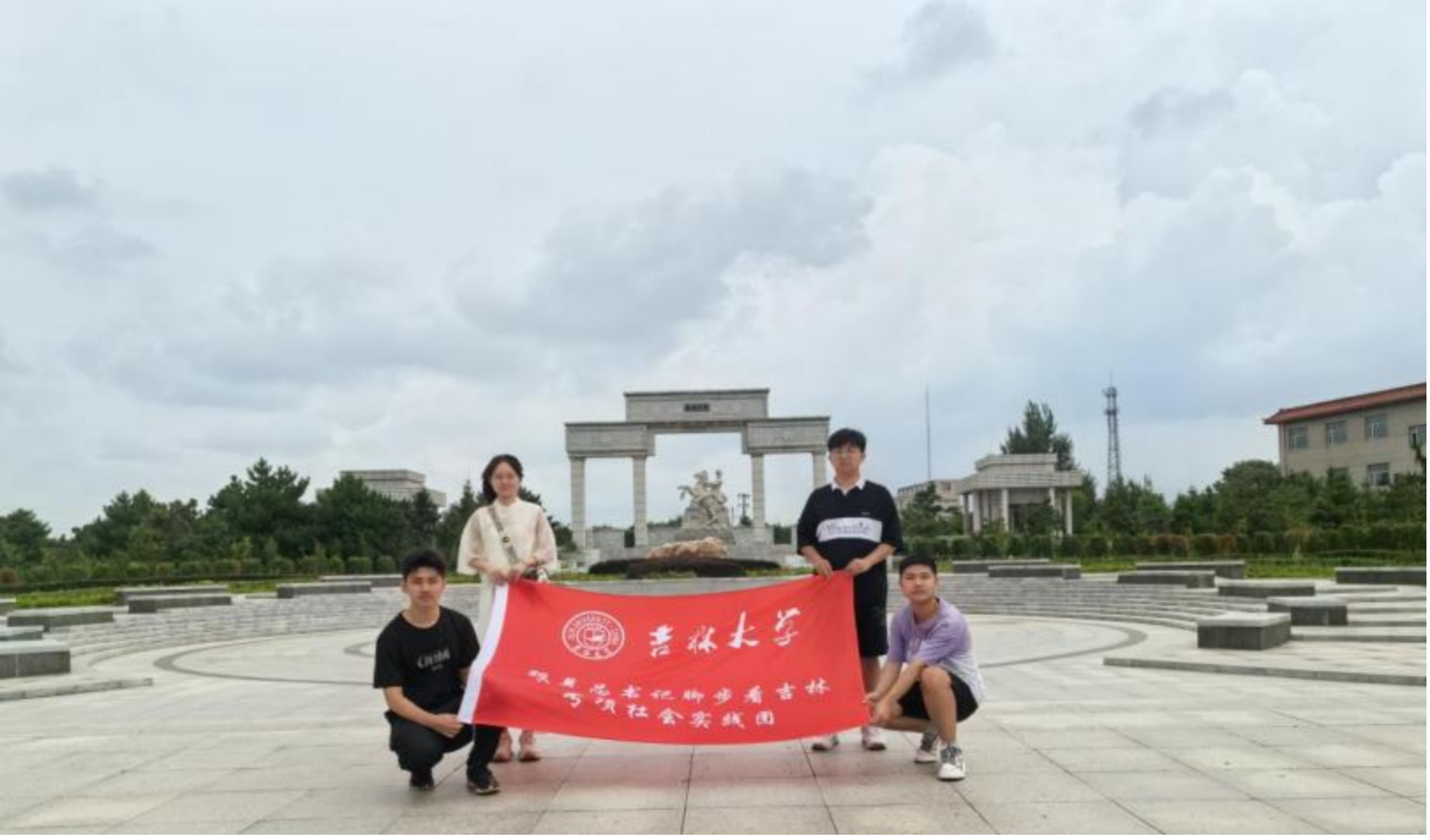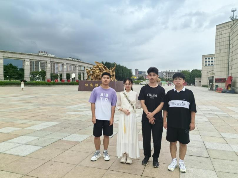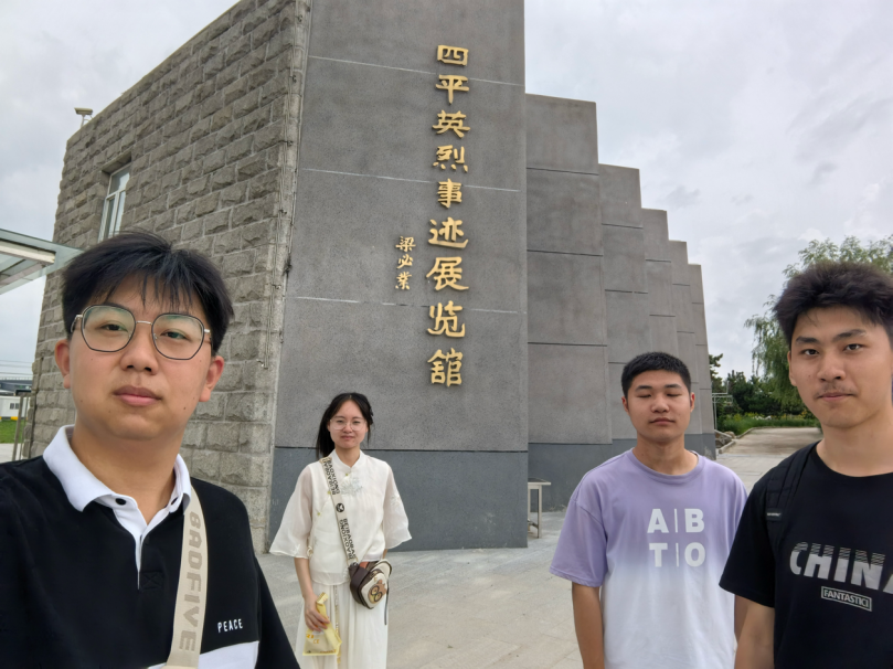 7月25日,实践团成员前往本次活动的第一站:四平战役纪念馆。四平战役纪念馆为国家一级博物馆,是社会科学类战史专题纪念馆,也是四平市著名的红色爱国主义教育实践基地。馆外,一座座金属雕塑巍然矗立,仿佛在诉说着那段烽火连天的岁月。进入馆内,一张张老照片、详尽的东北沙盘地图,以及生动的历史影像,将大家带回了那个硝烟弥漫的战场。在纪念馆广场,实践团全体成员合影留念,共同铭记这段光辉历史。