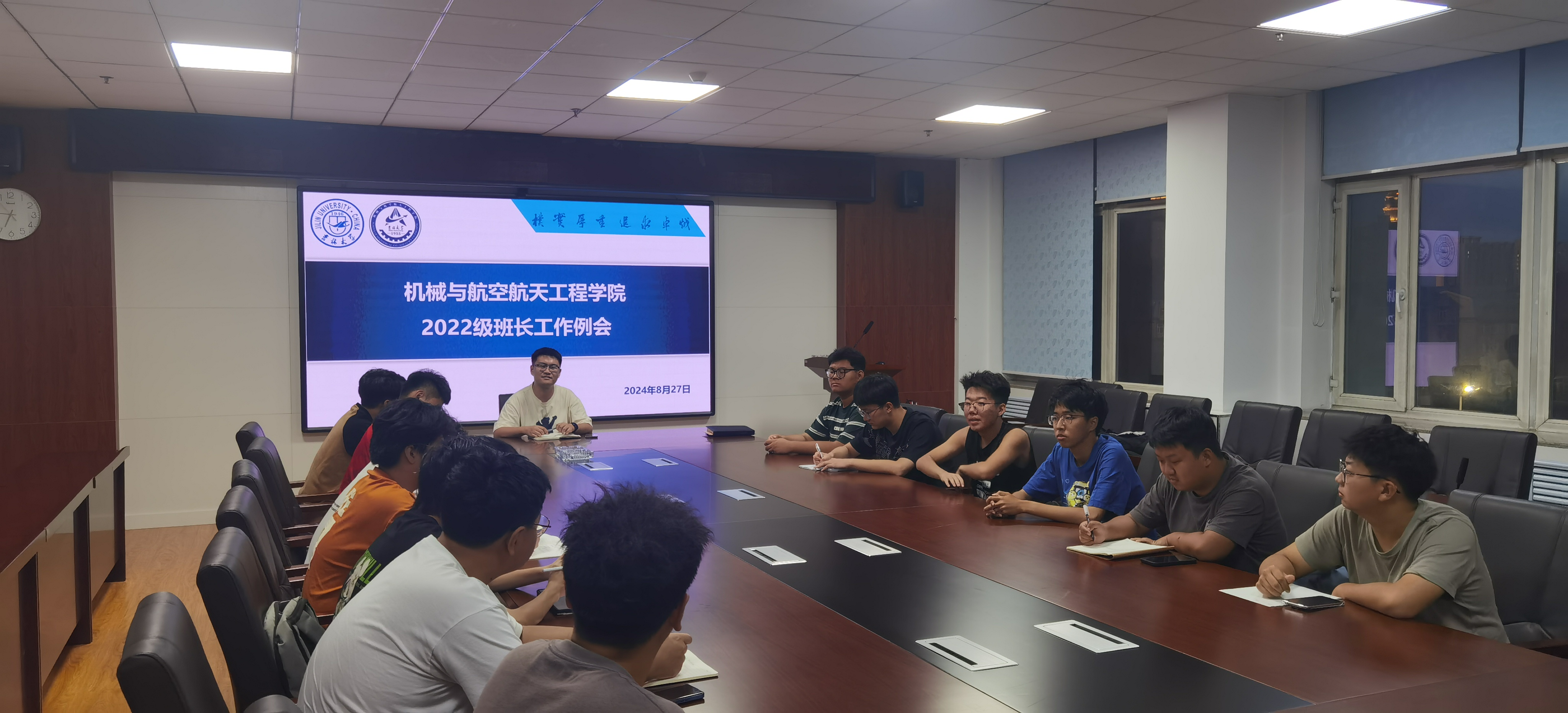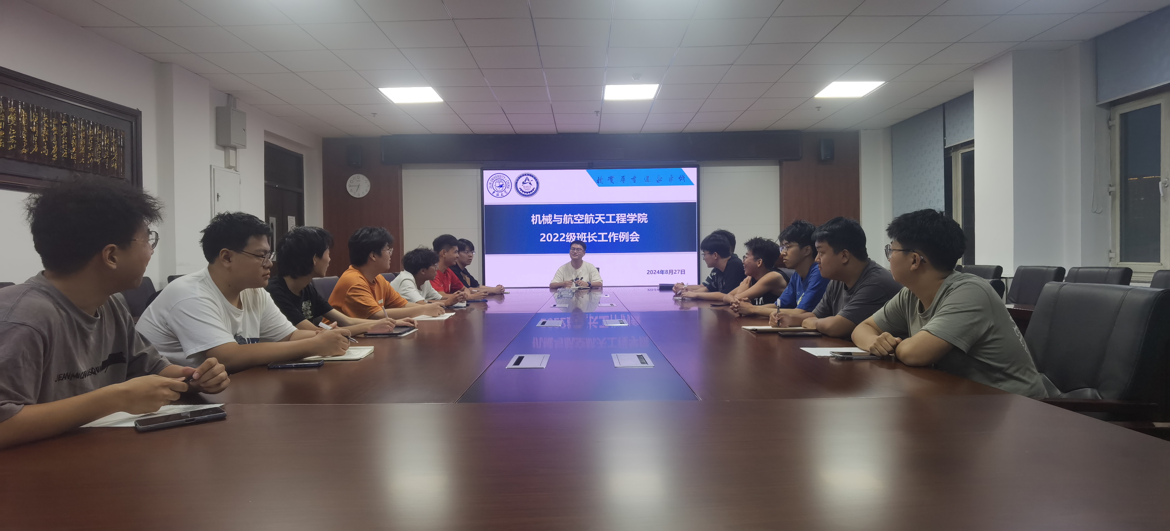 为加强各班管理,增强师生之间的沟通与交流,yl23455永利2022级本科生于8月27日晚在机械馆529举办2024学年秋季学期第一次班长工作例会。会议由辅导员张富尧老师主持,2022级全体班长参会。