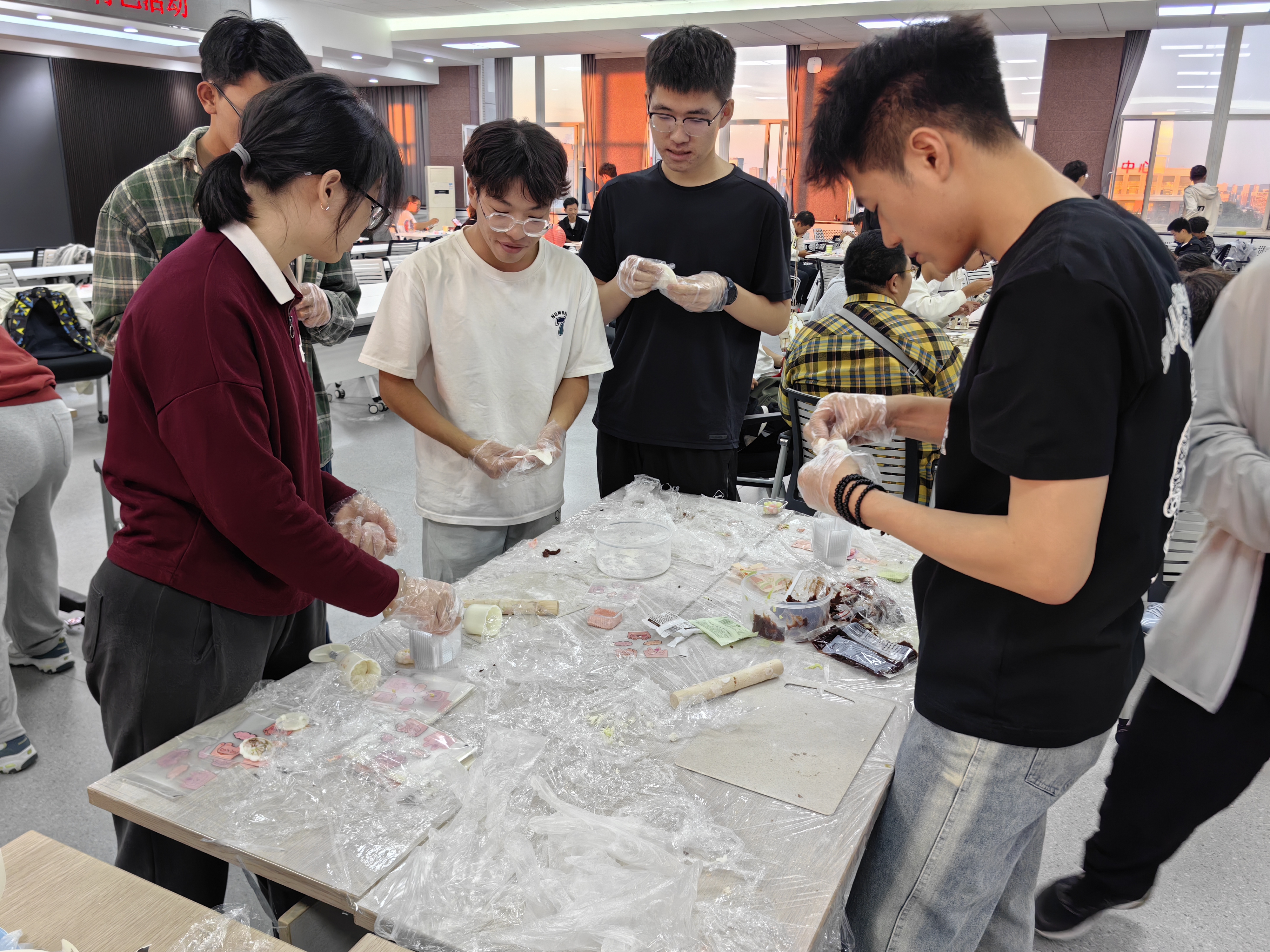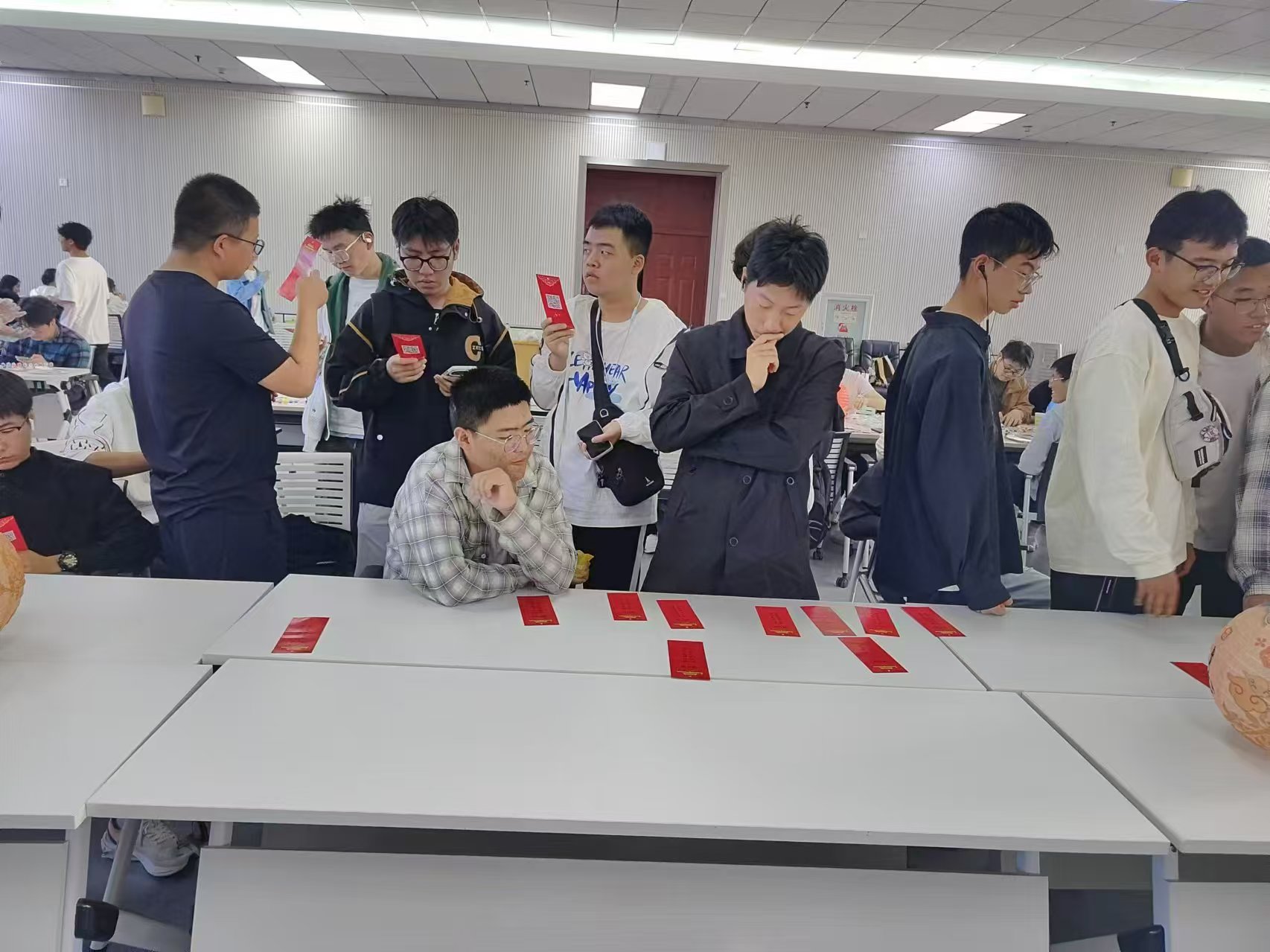 机械馆八楼报告厅充满了浓厚的节日氛围,室内摆放着员工们亲手绘制的花灯。这些花灯形态各异,有传统的兔子灯、荷花灯,也有充满创意的现代设计。除了手绘花灯,自制月饼也是活动的一大亮点。同学们利用员工会工作人员提前准备好的材料制作了多种口味的月饼,如豆沙、凤梨、五仁等。猜灯谜的游戏更是将活动推向了高潮,桌子上摆放着一条条谜语,同学们纷纷驻足思考,竞相猜测谜底,现场气氛热烈而欢乐。寄情书信活动让同学们向远方的亲人或朋友表达思念之情,在书信中,他们诉说着自己的心声,分享着中秋的欢乐和祝福。