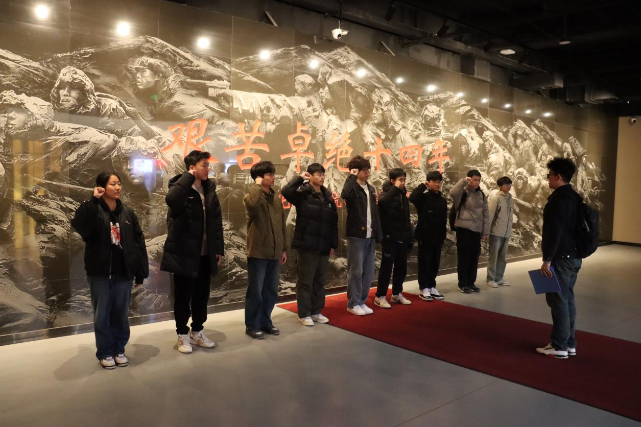 活动最后,全体团员步入“红色微讲堂”展厅。暗红色幕墙上浮雕着革命烈士群像,暖黄色射灯在讲解员身侧投下庄严的光晕。讲解员讲述了时任政委在弹药告罄时,用钢笔尖蘸着硝烟未散的焦土,在桦树皮上写下“把最后一颗子弹留给红旗”的壮烈史诗。四十分钟的讲述中,掌声屡次如潮水般漫过展厅,铿锵誓言与展厅外早春的松涛声交织成震撼人心的和鸣。未来团委将持续组织走进红色基地活动,以沉浸式教育筑牢信仰之基。