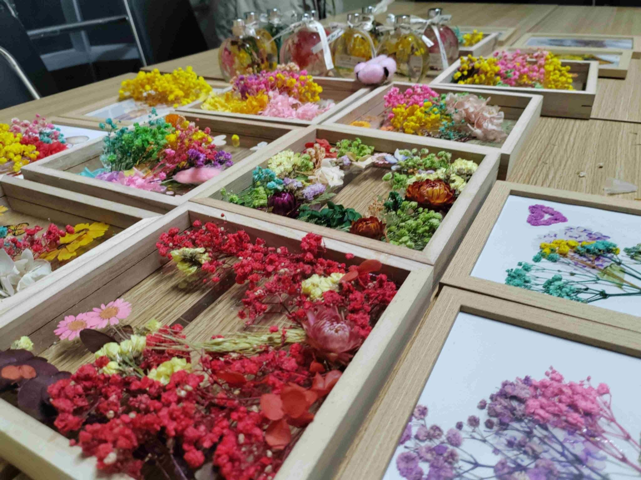 “期末临近压力倍增,但这两个小时里,专注于手中的花瓣,把烦恼‘贴’进画框,再收到陌生同学温暖的解读,紧绷的心真的松弛下来了。”一位参与者分享道。在这个花香弥漫的春夜,木框与干花不仅承载了巧思,更成为了情绪的出口与心灵的慰藉,悄然播撒下积极心理的种子。