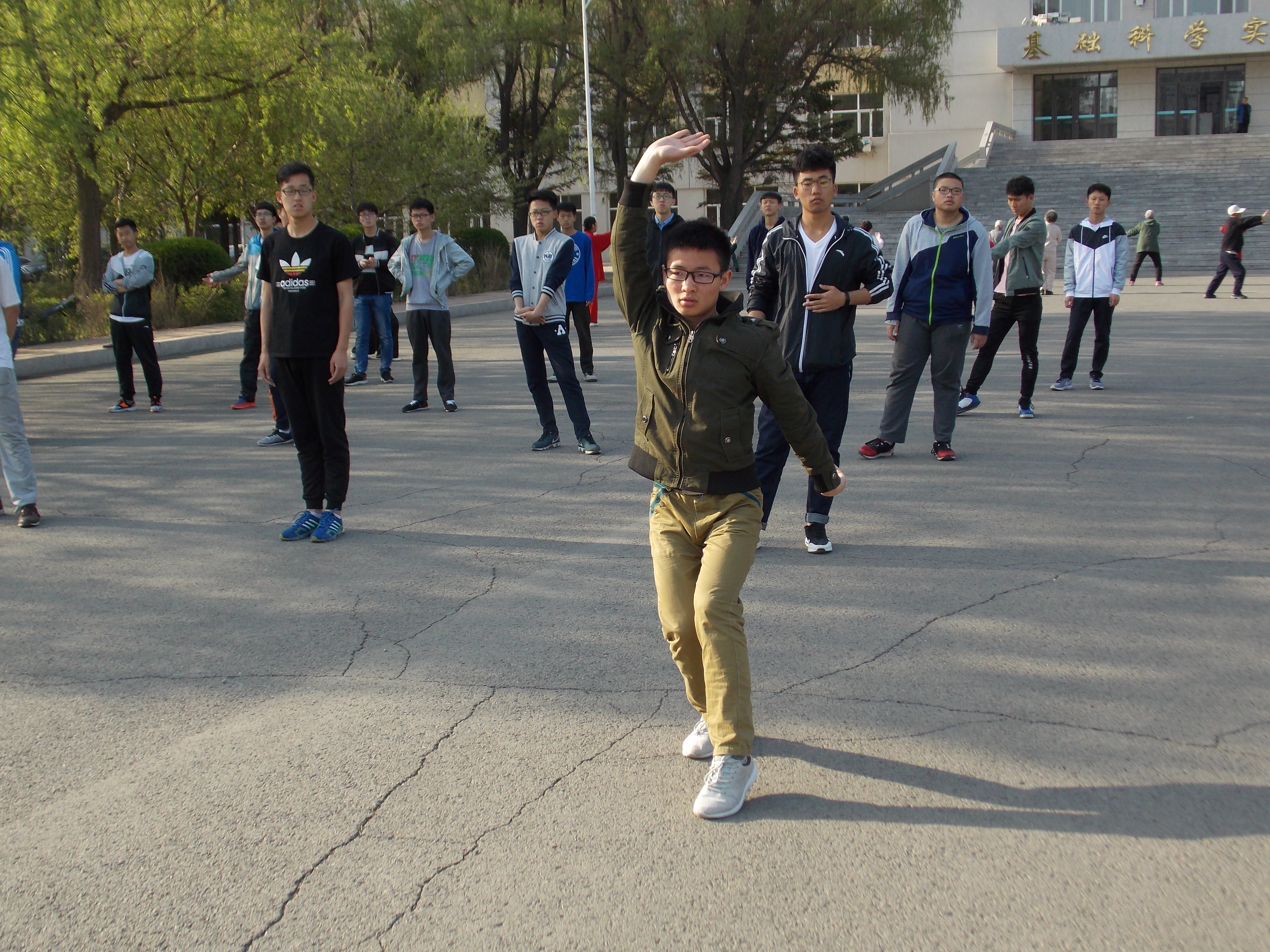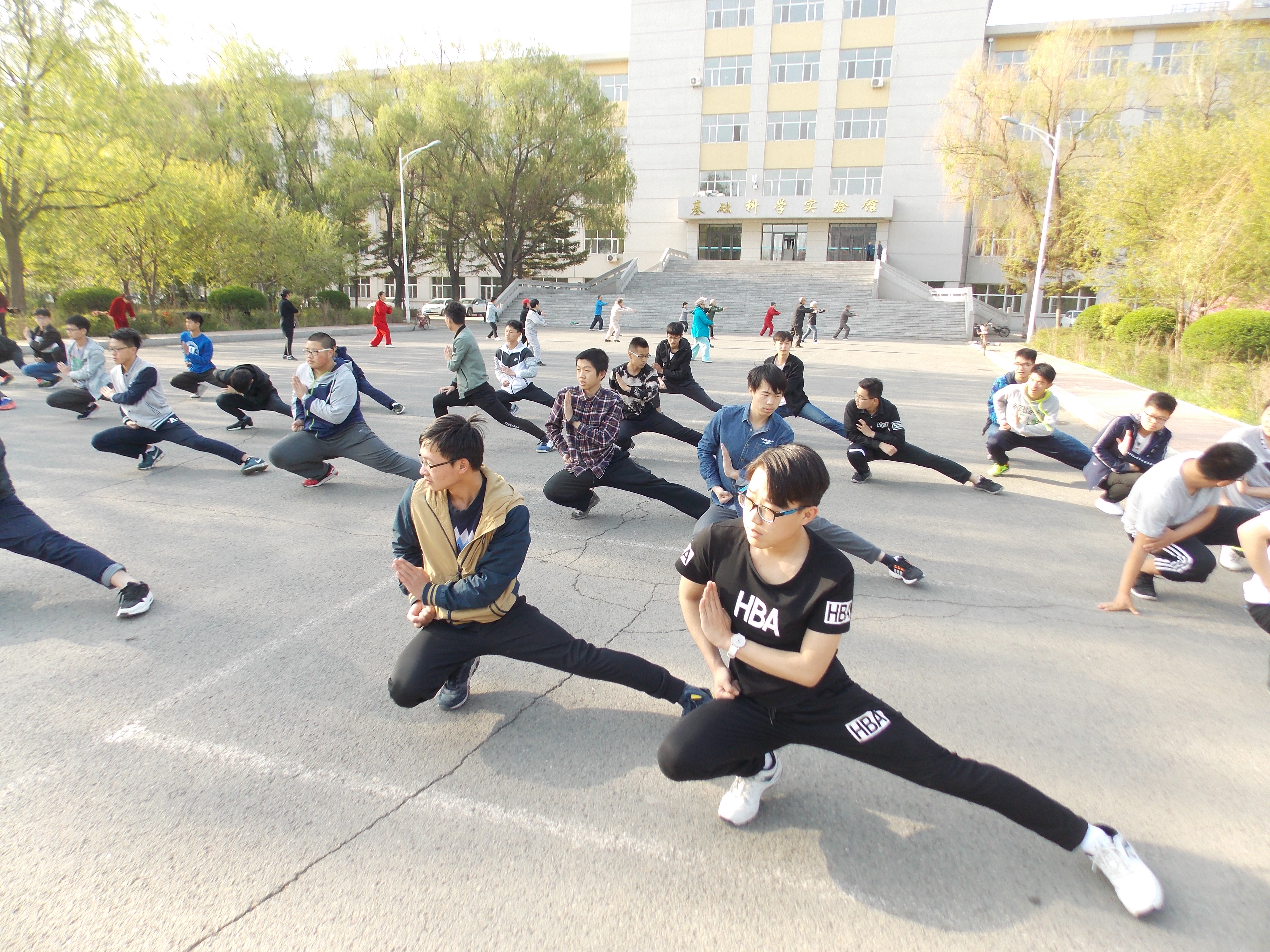 每天早上6点20分在基础实验楼门前以及晚上9点在逸夫楼后,同学们都会进行长拳训练。早上即使同学们的脸上还带着些许困意,但也无法打消同学们训练的积极性。长拳姿势舒展、动作灵活、快速有力、节奏鲜明,同学们在学习完所有的招式之后,不免要在各个动作的连贯和衔接上下一番苦功,虽然动作有些难度,但是同学们仍坚持不懈地练习着,力求让动作更加娴熟,更有气势。经过了近两周的练习,同学们的动作没有了刚开始时的生涩。在训练过程中,同学们也互相请教,虚心学习,共同进步。学长也会进行监督和指正,让同学们的动作更加符合标准。