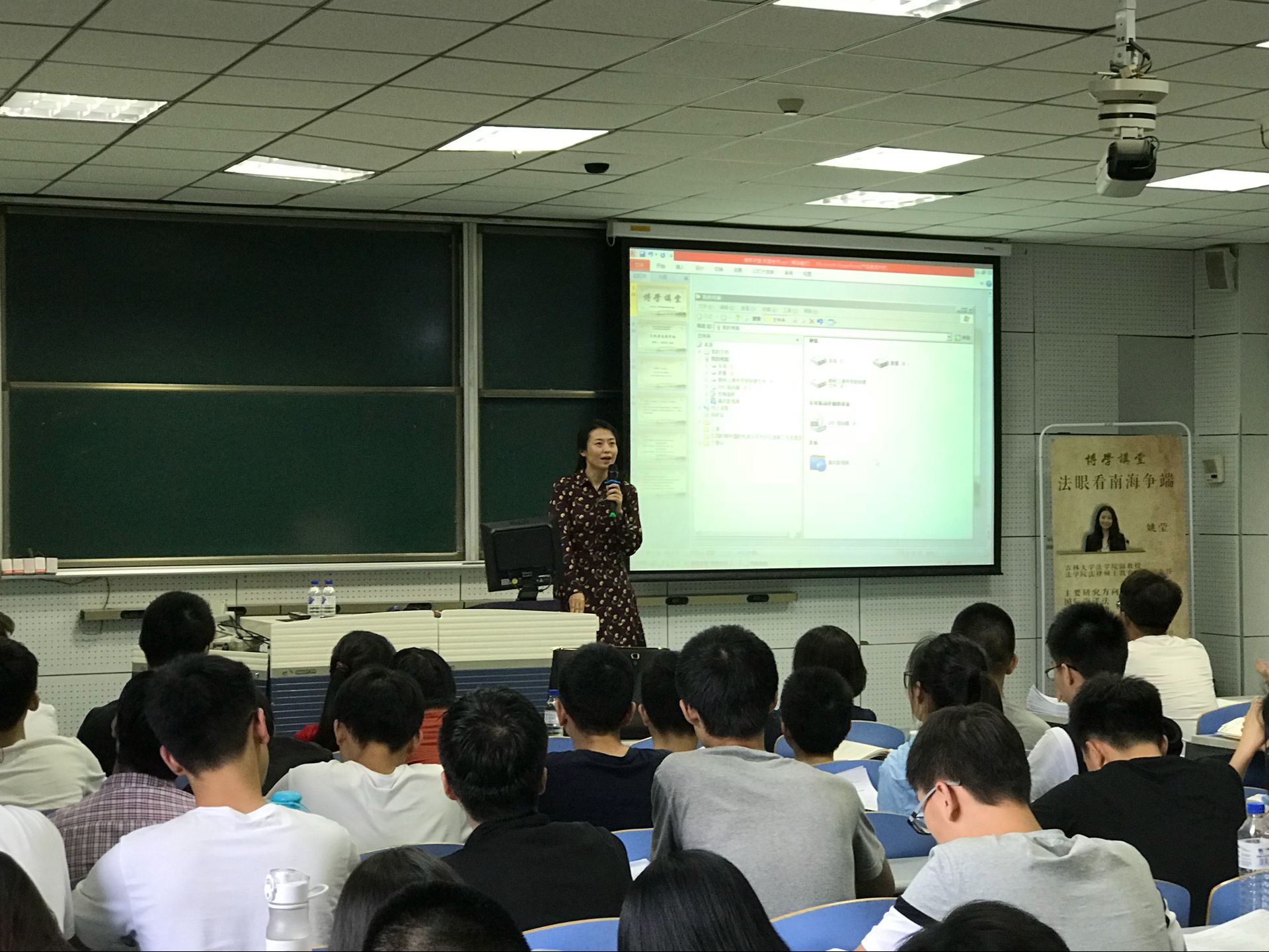 6月13日下午6时,由yl23455永利东区员工办公室主办,机械科学与工程公司协办的第一届跨校区文化交流系列讲座“博学讲堂——法眼看南海争端”在南岭校区逸夫教育大楼A203报告厅举办。yl23455永利法公司副教授姚莹老师担任此次讲座主讲人。