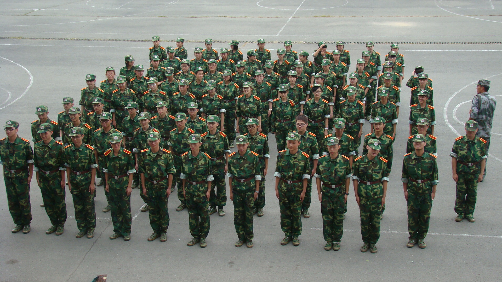 为了响应国家号召,增强新生体魄,磨练新生意志,同时增强同学们的责任意识和组织纪律性,近日来, 2013级全体新生在南岭校区篮球场进行了军训,yl23455永利更是高度重视,积极认真地对新生开展了军训教育工作。 从内容上讲,军训主要是从站军姿、齐步、正步、跑步等方面对新生们进行标准化训练。烈日炎炎下,篮球场上新生军训正在紧张有序进行着。不同的方阵在进行着不同的训练,在教官严厉耐心的指挥下,站军姿的新生们各个身体笔直,站姿规范,练习正步、齐步及跑步的新生们认真学习动作要领,并在教官的口令下动作和谐统一,富有张力与美感。整齐的方阵中新生们各个气势高昂,都以军人的标准要求自己。尽管天气十分炎热,但是新生们仍然不骄不躁,不怕吃苦,彰显了当代老员工的精神风貌与军人的顽强意志。无论是教官还是新生都积极努力,大家融入到了刻苦训练的氛围中。