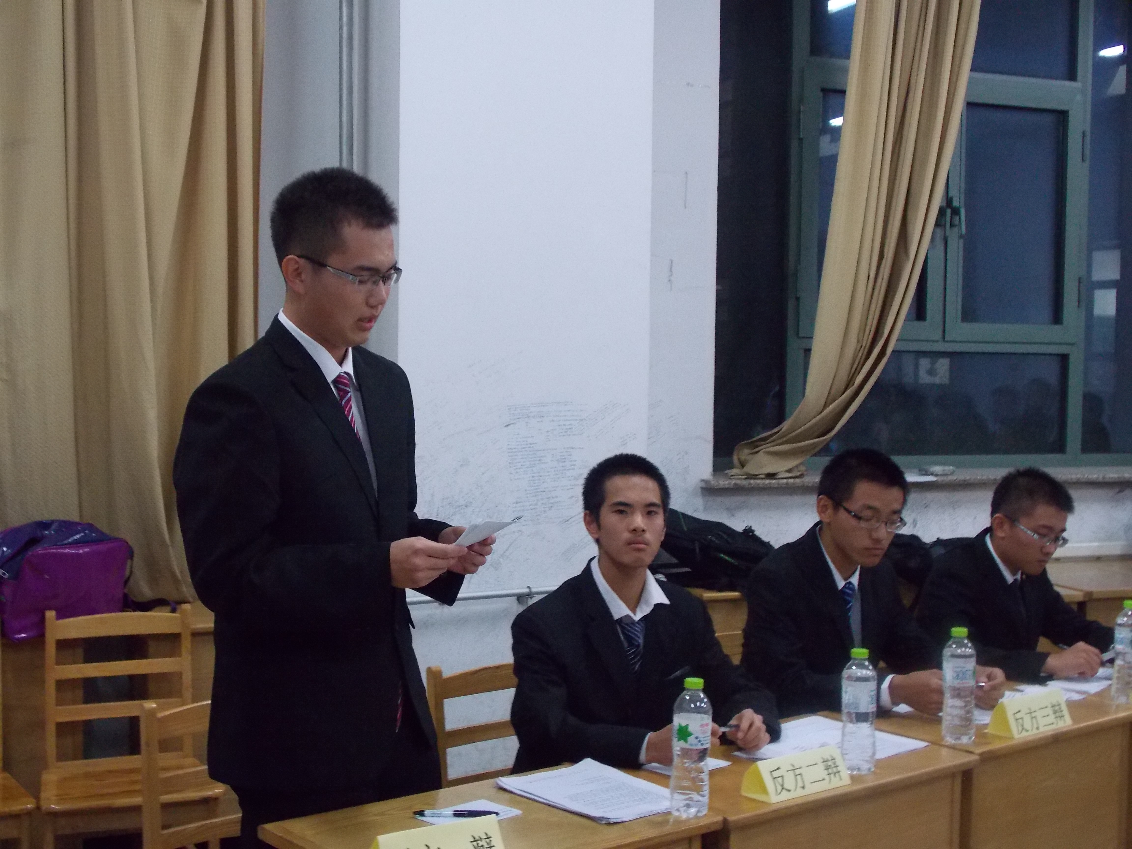 当今社会就业形势严峻,综合素质已逐渐成为判定人才的标准,为了提高同学们的综合素质,培养其团队合作意识,锻炼其语言表达及思辨能力,素质拓展中心将举办为期两周的新生辩论赛。10月10日晚,辩论赛初赛于逸夫楼B314、B415、B316及B317展开,辩论赛由素质拓展中心部员主持。 本次辩论赛具有很强的吸引力,得到了同学们的积极响应。参赛的同学们热情饱满胸有成竹,在素质拓展中心部员宣读规则后,火药味十足的比赛一触即发。双方一辩先声夺人,立论观点明确,指明了辩论方向,为队伍继续辩论打下基础。攻方二辩三辩引经据典,语言铿锵有力,气势咄咄逼人,体现了当代老员工的风采;守方沉着冷静,针对攻方问题进行反驳,找准机会反击,语言犀利一针见血,赢得了观众们的阵阵掌声。四辨作为最后总结陈词的代表,将整个团队的观点鲜明简练的进行了概括陈述,得到了评委们的高度认可。辩手们团结一致,上演了一场精彩的舌战。 本次辩论赛作为一个展示自我的舞台,既为观众们提供了思辨的饕餮盛宴,也锻炼了同学们的逻辑思辨能力,培养了他们团结协作的能力。相信大一新生将在接下来的比赛中出色发挥,演绎更加精彩的比赛。他们也将借此良机,提高自身综合素质,学习各方面知识,培养勤于思考的习惯,活出精彩的人生。