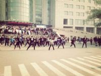 音乐声渐渐响起,同学们停下了来去匆匆的步伐,逸夫楼前很快聚集了许多驻足欣赏的同学。舞蹈由文艺部部长及副部长开场,整齐的西装搭配时尚动感的舞姿,展现出吉大学子成熟而不失活力的精神风貌。参与快闪活动的百余名大一新生则分别装扮成不同行业的从业者:或是身着军大衣的“门卫大爷”,或是精于挖掘技术的“蓝翔工人”,或是抢险救灾的“消防小分队”。这些不同的装扮正代表着生活中虽角色不同却共存着青春之火的人们,同学们用舞蹈向社会表达了愿青春激情永存的诉求。随着快闪活动的火热进行,围观的同学也忍不住加入舞蹈队伍中,释放青春活力。本次活动还得到了街舞协会的大力支持,为活动的开展更添一抹亮色。