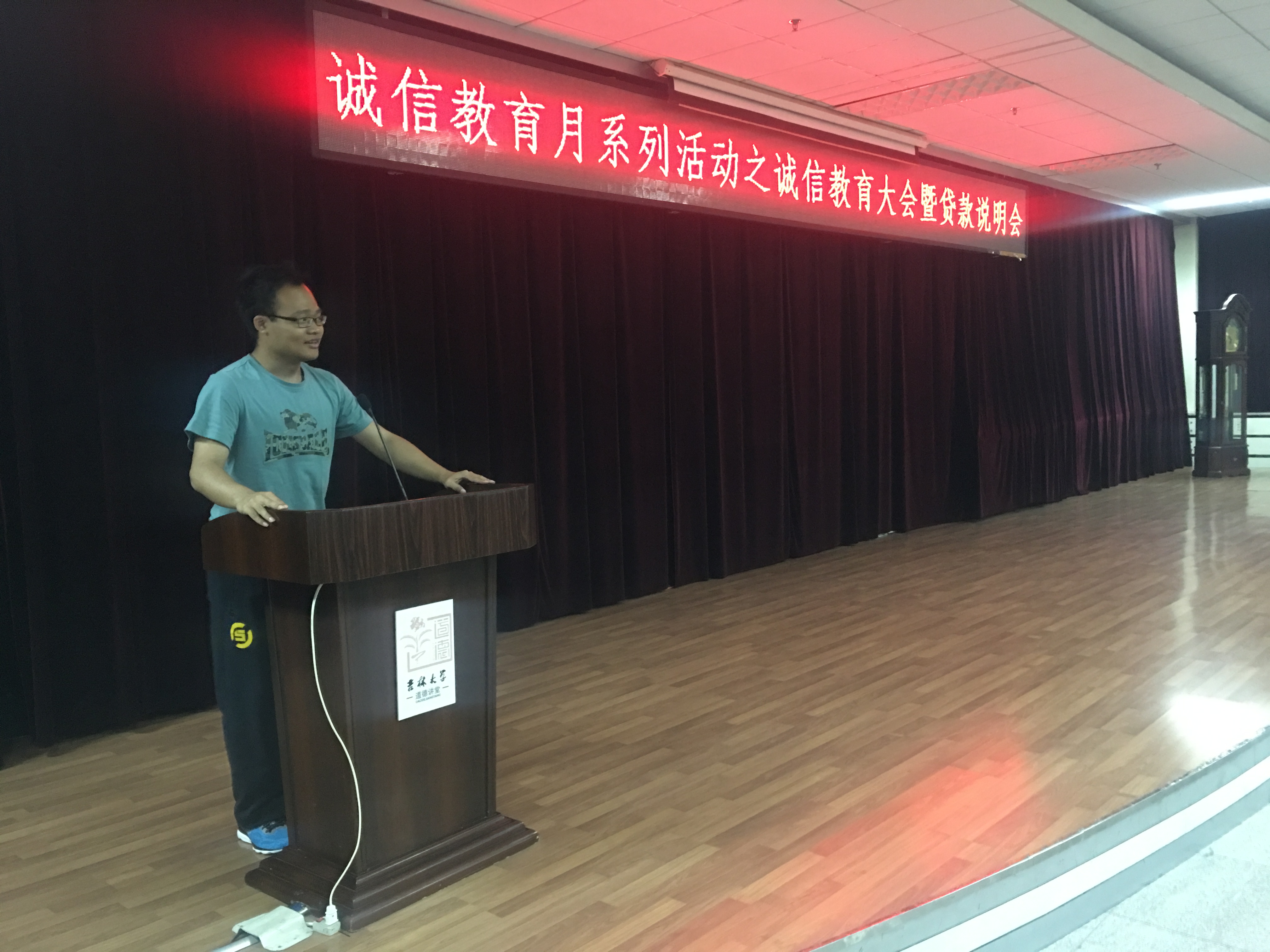 为了有效解决助学贷款政策在落实中存在的问题,进一步推动助学贷款工作健康持续发展,构建诚信还债的和谐氛围,yl23455永利2012级辅导员李晶老师于5月30日晚在机械馆8楼召开了诚信教育大会暨贷款说明会,为即将到来的诚信教育月做铺垫。大一到大四全体班委参加了本次会议,毕业生代表白雪峰同学做主要发言。