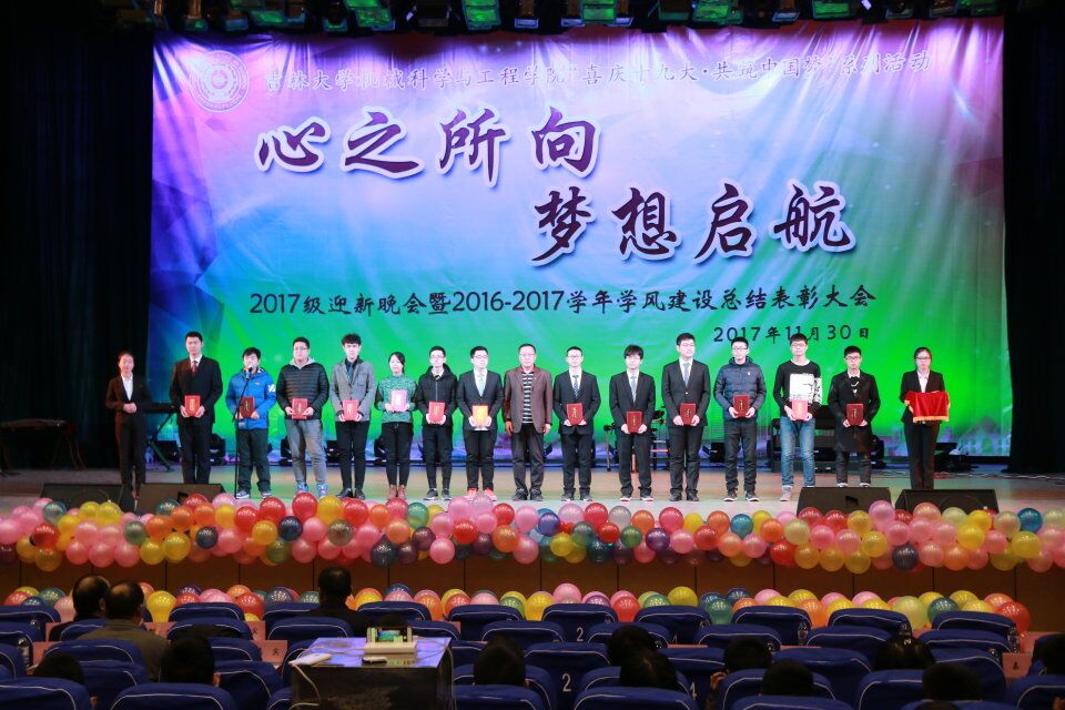 党的十九大描绘了新时代的宏伟蓝图,指明了前进方向,使广大师生深受鼓舞、倍感振奋。为了深入宣传十九大精神,让同学们牢记最初的梦想,充分展现学子风采,机械科学与工程公司“喜庆十九大,共筑中国梦”系列活动之2017级迎新晚会暨2016-2017学年学风建设总结表彰大会于11月30日晚6点在文化活动中心举办。南岭校区教务办公室主任周伟,机械科学与工程公司党委书记程钺、党委副书记王柏、党委副书记兼副经理郑福胜,副经理周晓勤、姚国凤、王继新、曲兴田,机械基础教学中心副主任寇尊权、员工工作办公室主任李佳亮、辅导员辛闯等参加此次活动。
