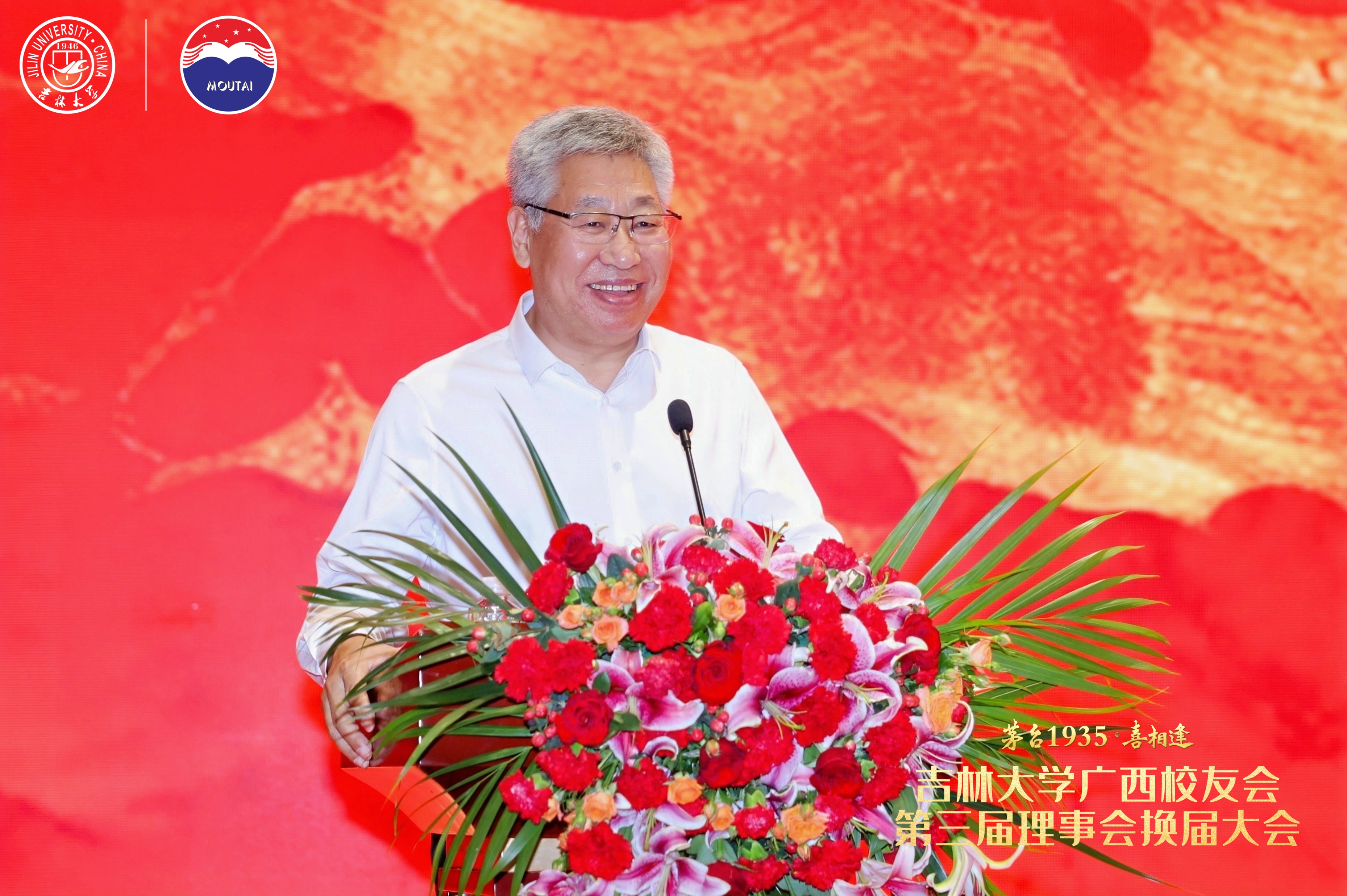 广西员工会会长邬文康首先致辞,全面回顾了第二届理事会在凝聚员工网络、深化社会服务、助力母校发展等方面的成果。他寄语新一届理事会以团结为根基,深化校地融合,展现吉大担当,持续为广西经济社会发展与母校建设贡献力量。