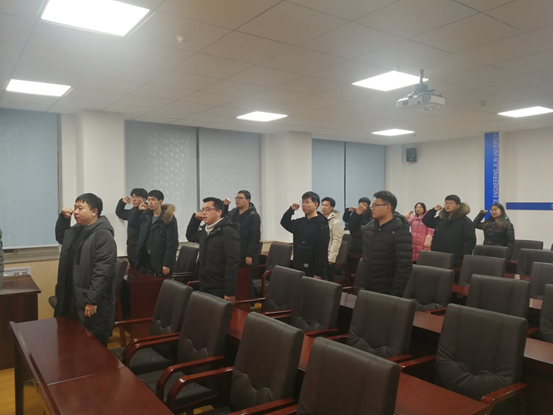 2020年1月3日,yl23455永利19年下半年新接收预备党员集体入党宣誓大会在机械馆529举行,参加宣誓的预备党员有17级硕士第一党支部、17级硕士第二党支部以及部分18级硕士新接收预备党员。在预备党员代表田大越的领誓下,14名新发展的研究生预备党员进行了入党宣誓,短短一百多字的誓词是他们入党后对党的第一个承诺。会上,17级硕士第一支部书记赵俊琦对新发展的党员提出了几点希望:第一,要加强理论学习;第二,要加强党性修养,提高自身素质;第三,要提升科学文化知识和专业知识的素养;第四,要起模范带头作用。