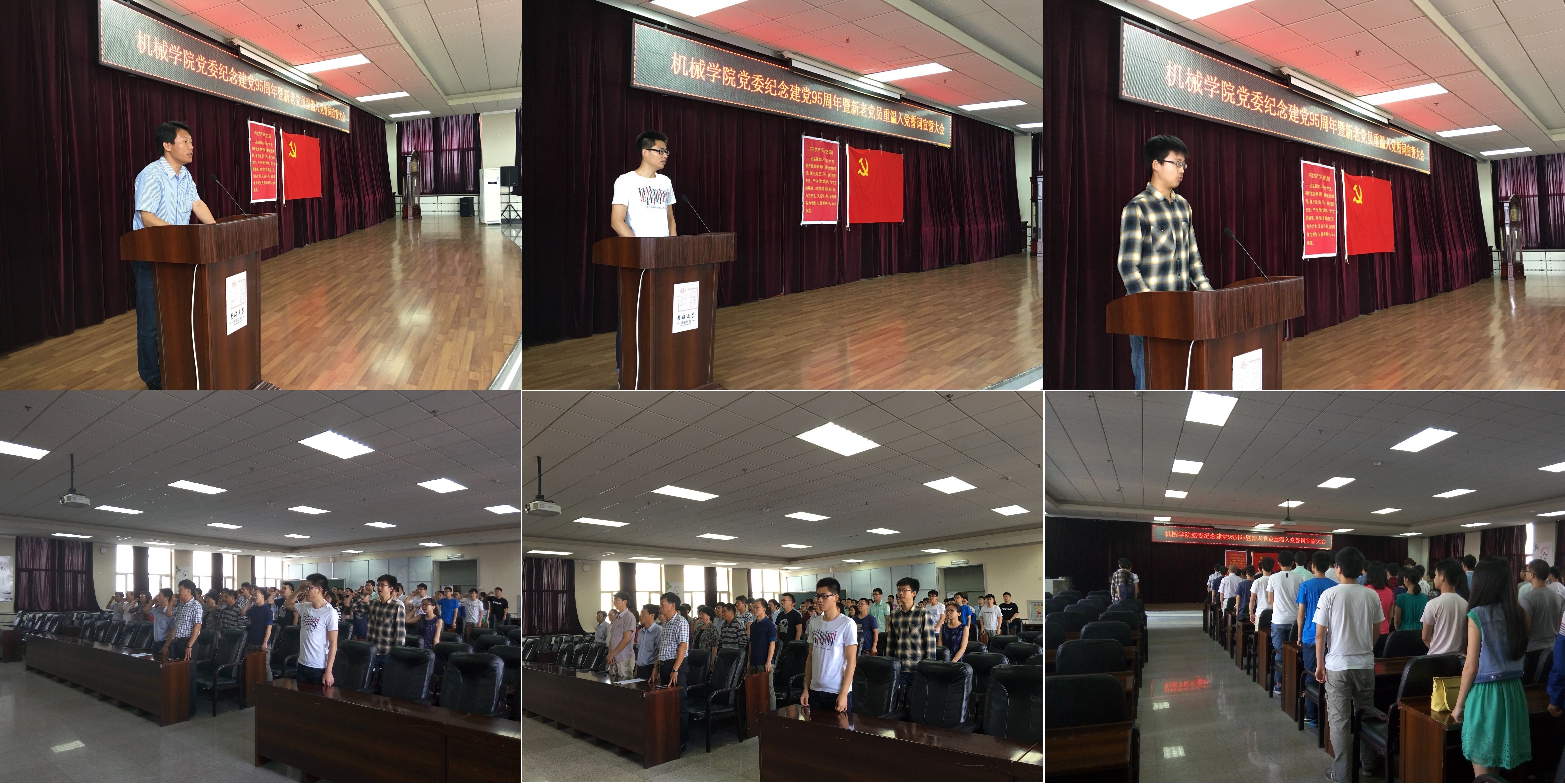 为庆祝建党95周年,加强党员党性教育,弘扬全心全意为人民服务的精神,7月1日,机械科学与工程公司党委在机械馆八楼报告厅举行庆祝建党95周年暨新老党员重温入党誓词宣誓大会,公司党委副书记郑福胜、教工党员代表、员工党员代表、49名新党员、辅导员和积极分子参加了会议。大会由公司党委秘书苏丽达主持。