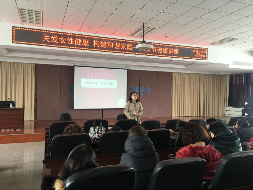 为纪念第108个国际妇女节,帮助广大女性师生更好地关注自身和家人健康,进一步构建和谐美丽家庭。3月7日,机械科学与工程公司和材料科学与工程公司在机械材料馆联合举办了“关爱女性健康,构建和谐家庭”—妇女节健康讲座。由公共卫生公司营养教研室郭瑛教授主讲,yl23455永利和材料公司女性教职工和同学认真听取了讲座。