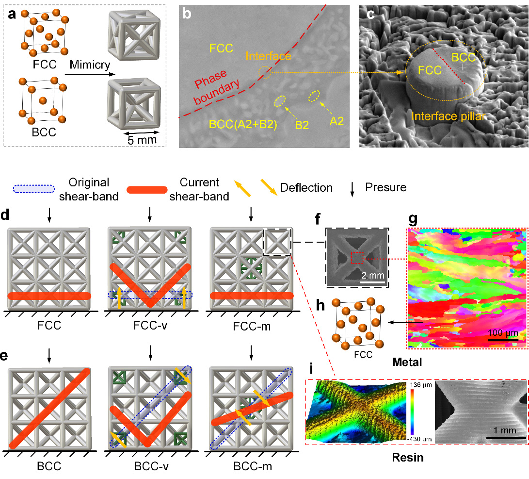 晶格结构由节点和支柱阵列而成,以其轻量化和独特的机械变形行为而闻名。先前关于晶格结构的研究表明,失效通常源于应力集中点,并迅速蔓延至整个材料,从而导致坍塌失效,整个过程类似于金属晶体缺陷处的损伤累积。据此,研究小组利用晶体材料中发现的析出强化机制,通过有限元法在应力集中点战略性地放置强化单元,旨在偏转原始的失效路径。除受晶体结构启发的结构设计之外,基础材料固有的微观结构在塑造宏观晶格的力学性能方面同样发挥着至关重要的作用。因此,研究小组提出了一种多尺度分层设计方法,为制造具备目标性能的工程材料提供了一系列设计概念。