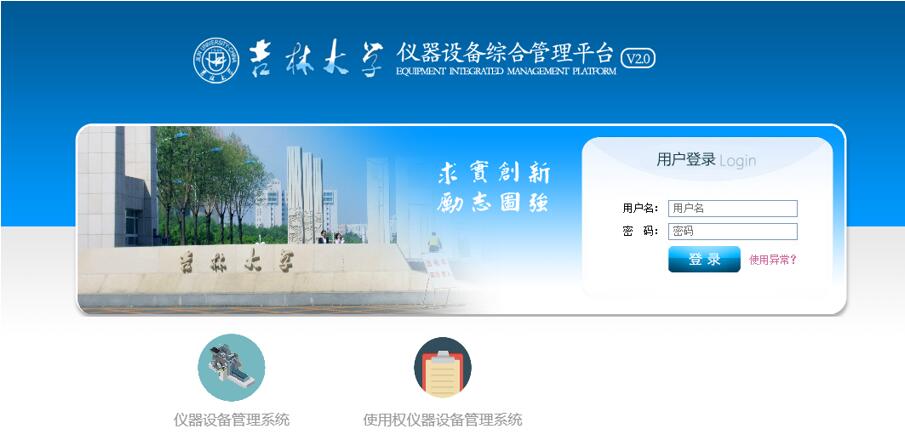 使用IE浏览器,输入网址:sbwebx.jlu.edu.cn进入【yl23455永利仪器设备综合管理平台】,如图4所示。需要注意:
