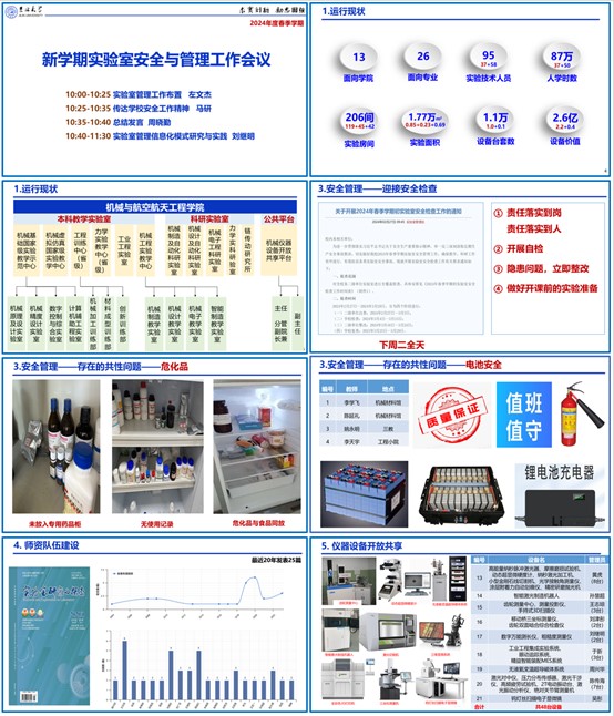 为切实做好公司2024年春季学期实验室安全与管理工作,确保教学、科研有序进行,有效防范实验室安全事故,公司于3月1日召开了实验室安全与管理工作会议。公司经理周晓勤、党委书记郑福胜、各系(室、所、中心)主任、副主任,全体实验技术人员出席会议。会议由副经理左文杰主持。
